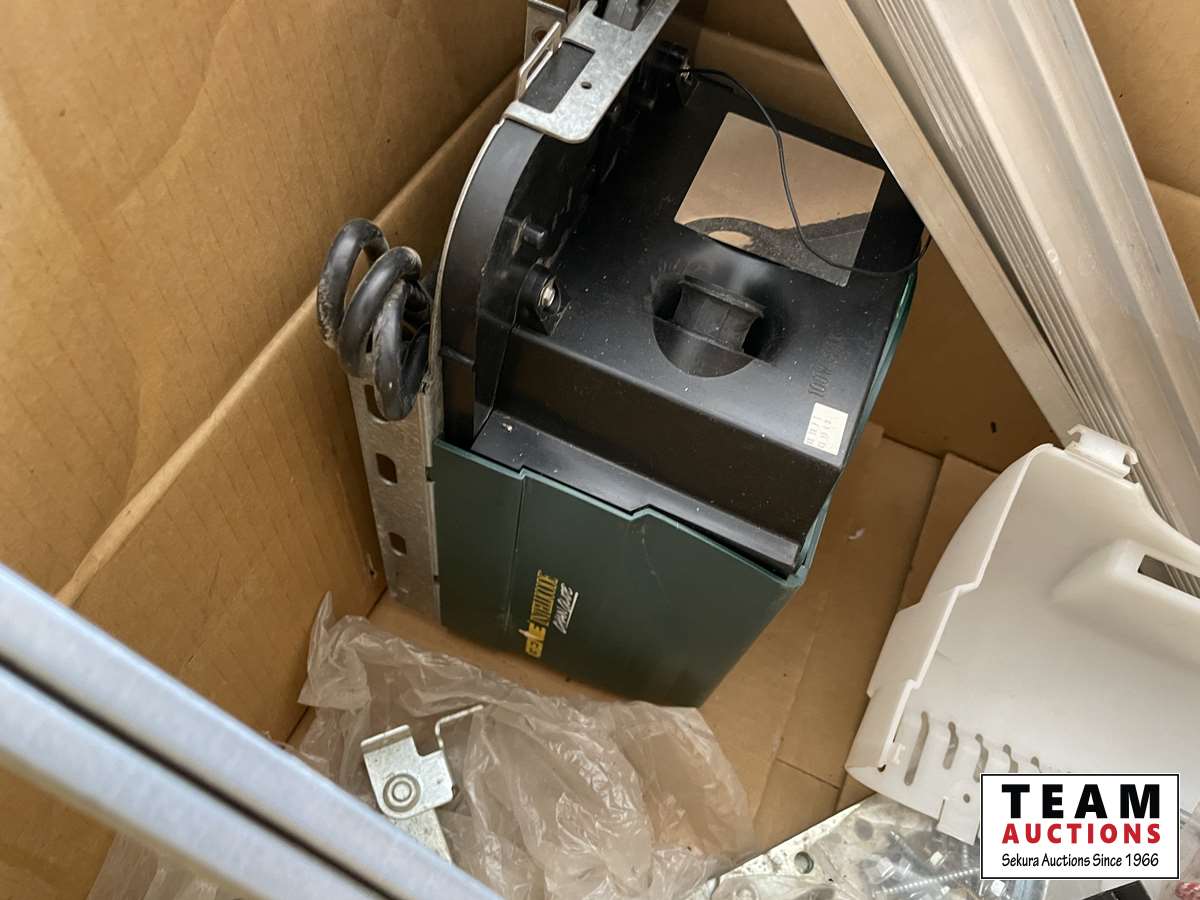 Door opener is chain drive 1/2 HP, 9 ft of track (for parts)