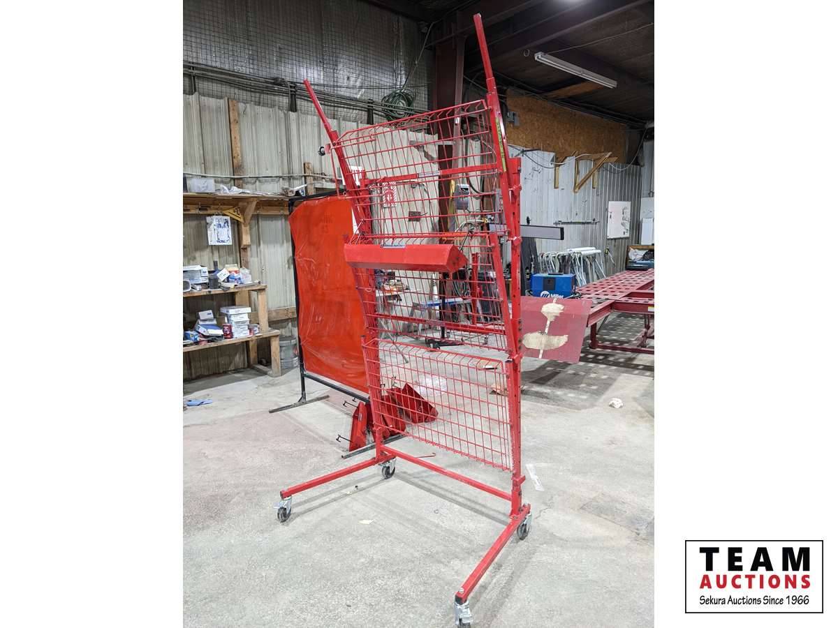 With (1) parts bin, 125 lb per shelf, folds up, on casters