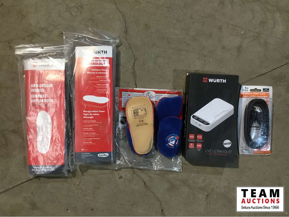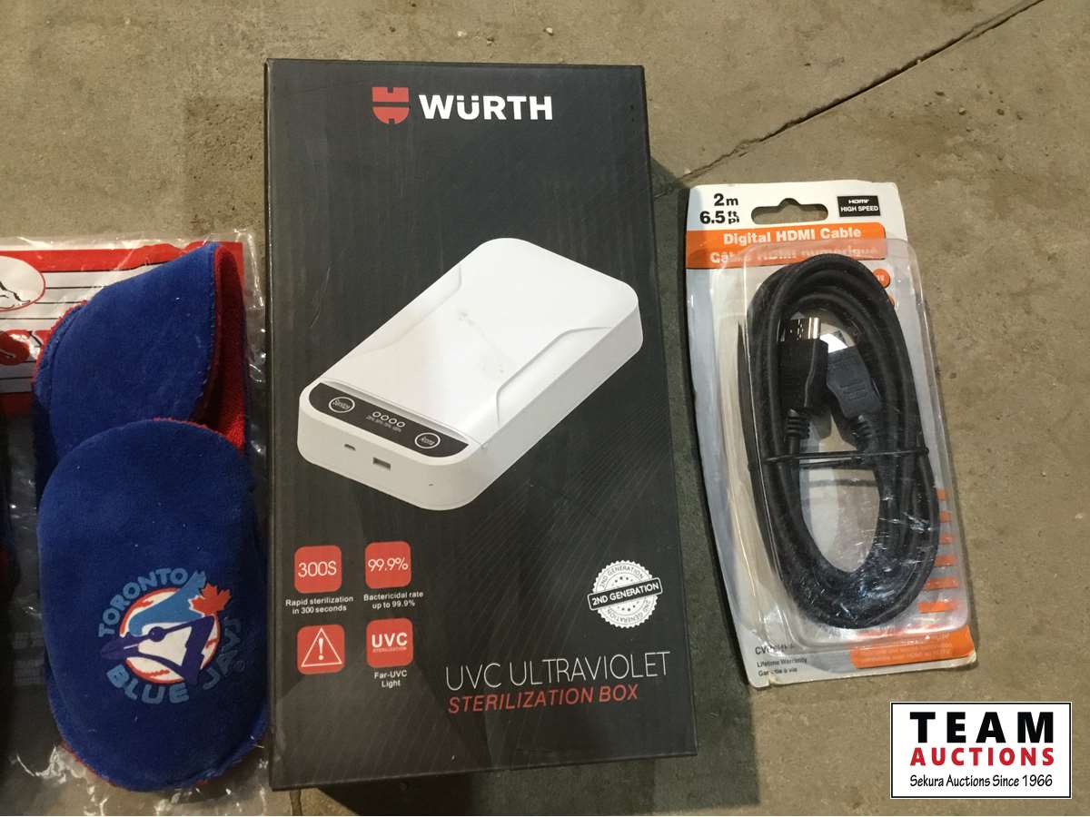 Anti-fatigue insoles, UVC Ultraviolet Sterilization Box, 6.5 ft HDMI cord, kids slippers (unused)