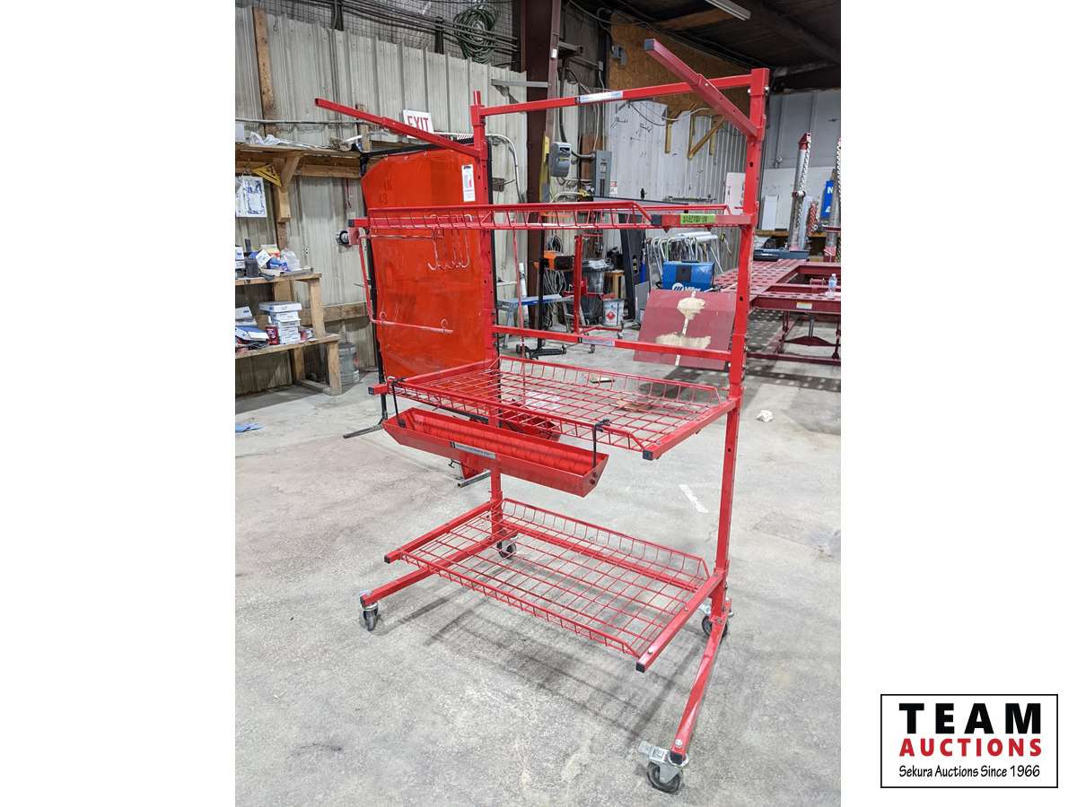 With (1) parts bin, 125 lb per shelf, folds up, on casters