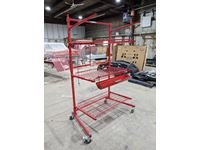 With (1) parts bin, 125 lb per shelf, folds up, on casters