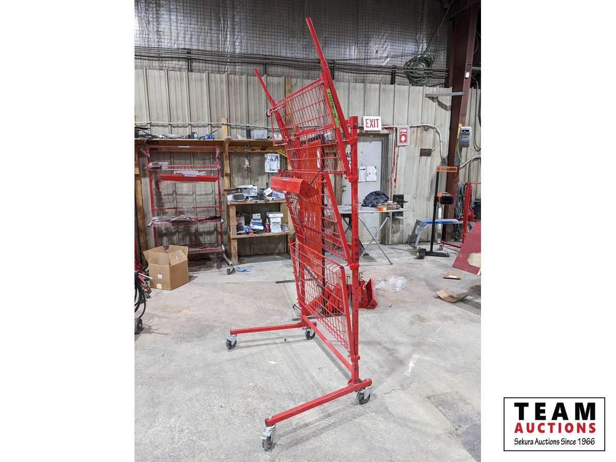With (1) parts bin, 125 lb per shelf, folds up, on casters