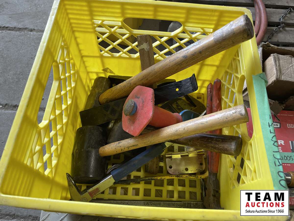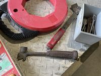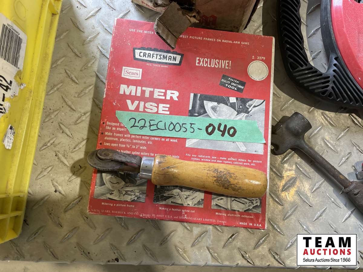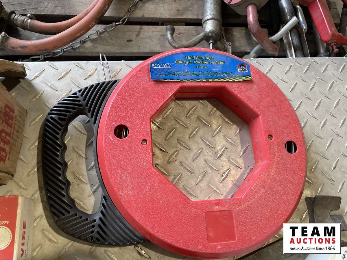 Miter vise, fishing tape, bits, hammers, miscellaneous