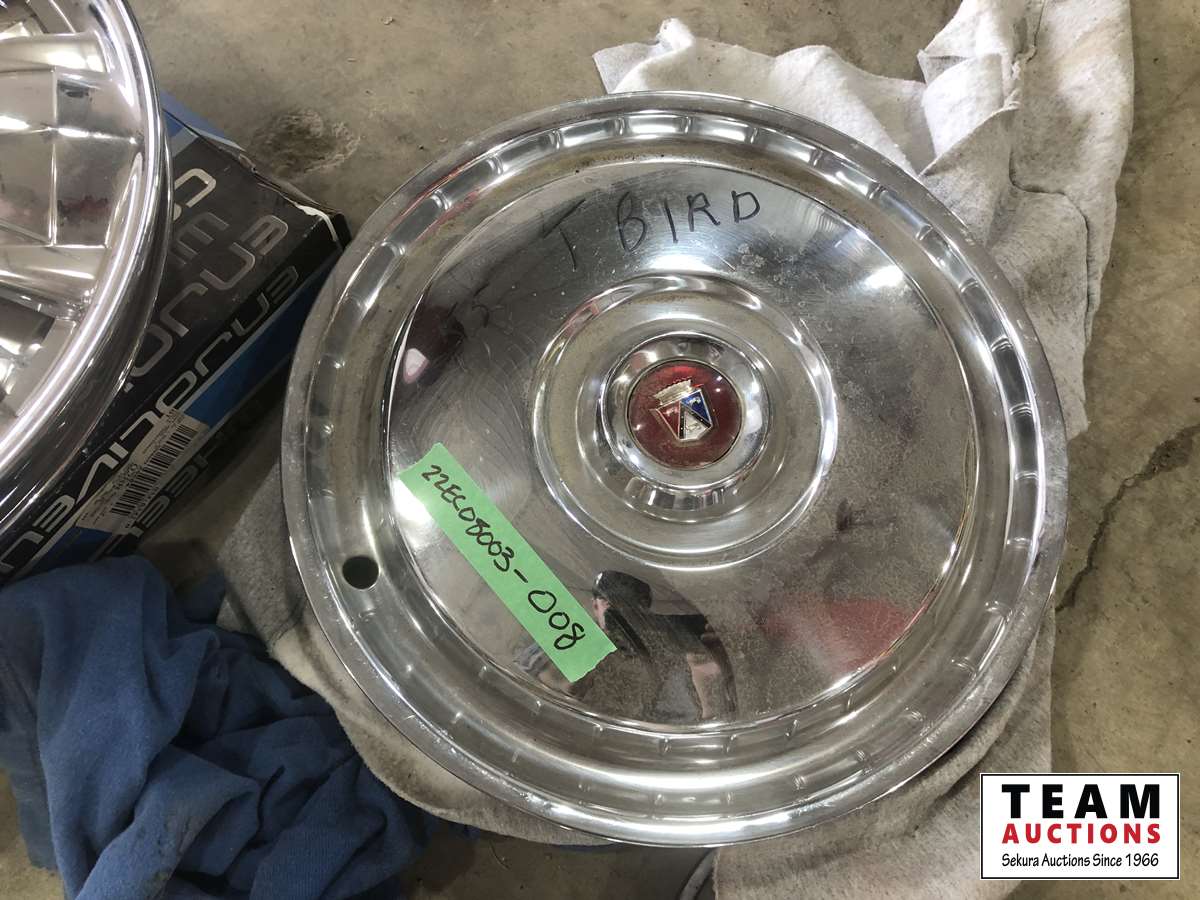 15 inch hub caps, 1955 T-bird hub caps, wing mirrors and instrument panel cover
