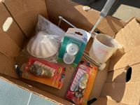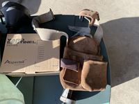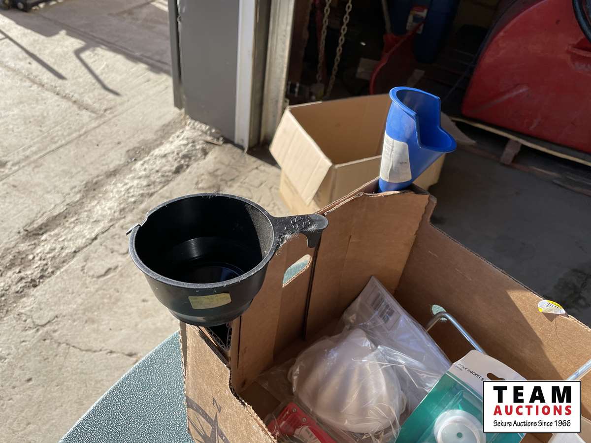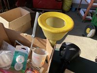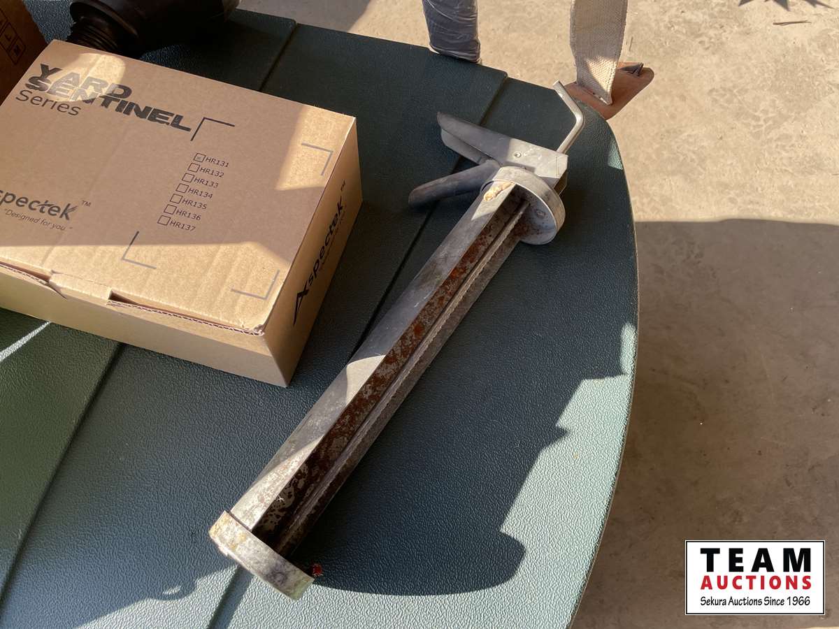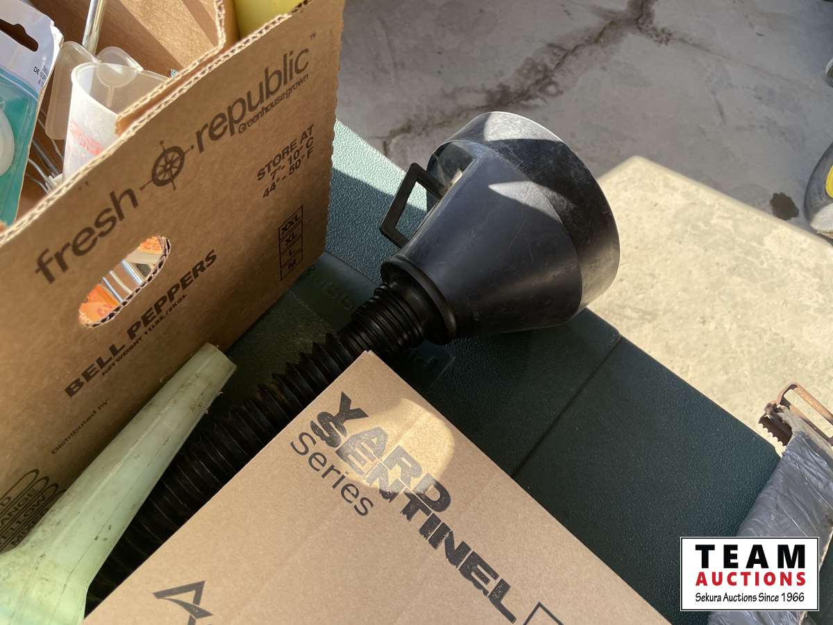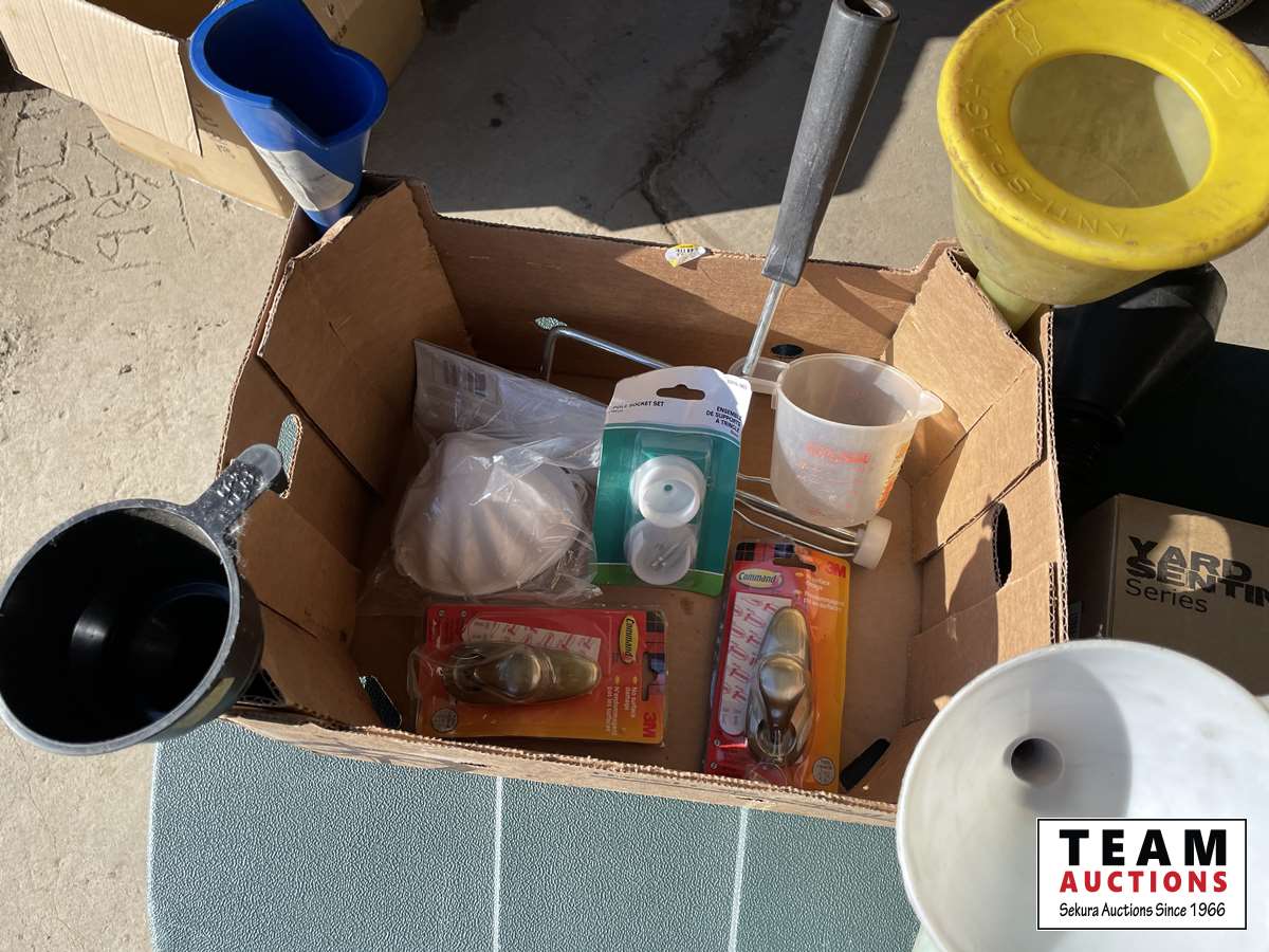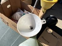 Funnels, tool belt, caulking gin, hooks, pest repellor