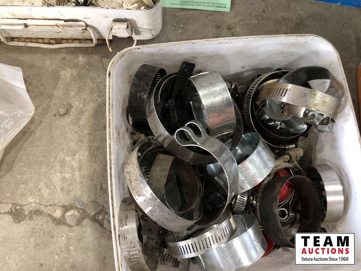 Hose clamps, wire cut brush, grinding stones, buffing wheels, rivets
