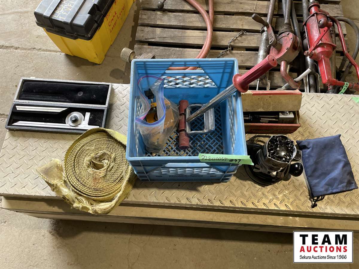 Router, tow strap, caliper, flooring tools, miscellaneous