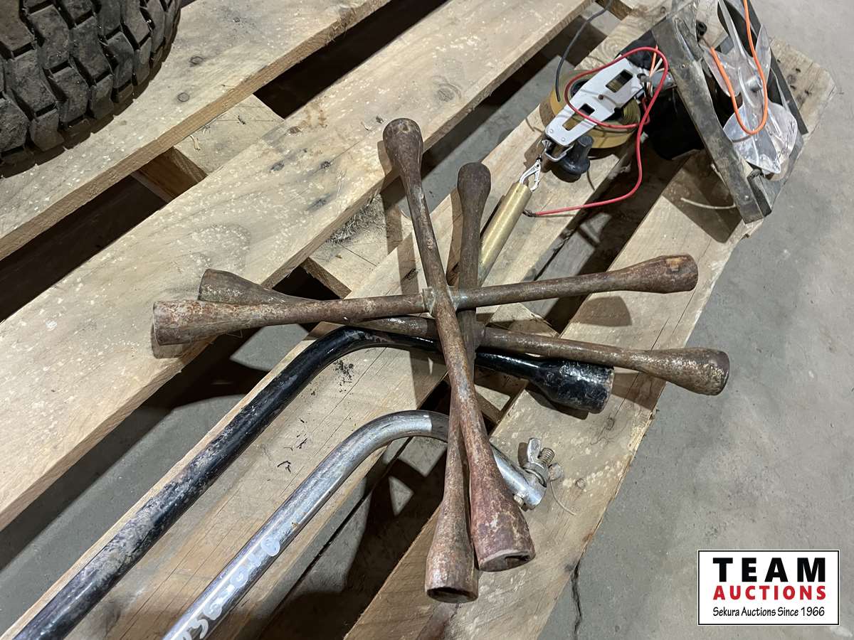 Tire wrenches, hand saw, electric fan