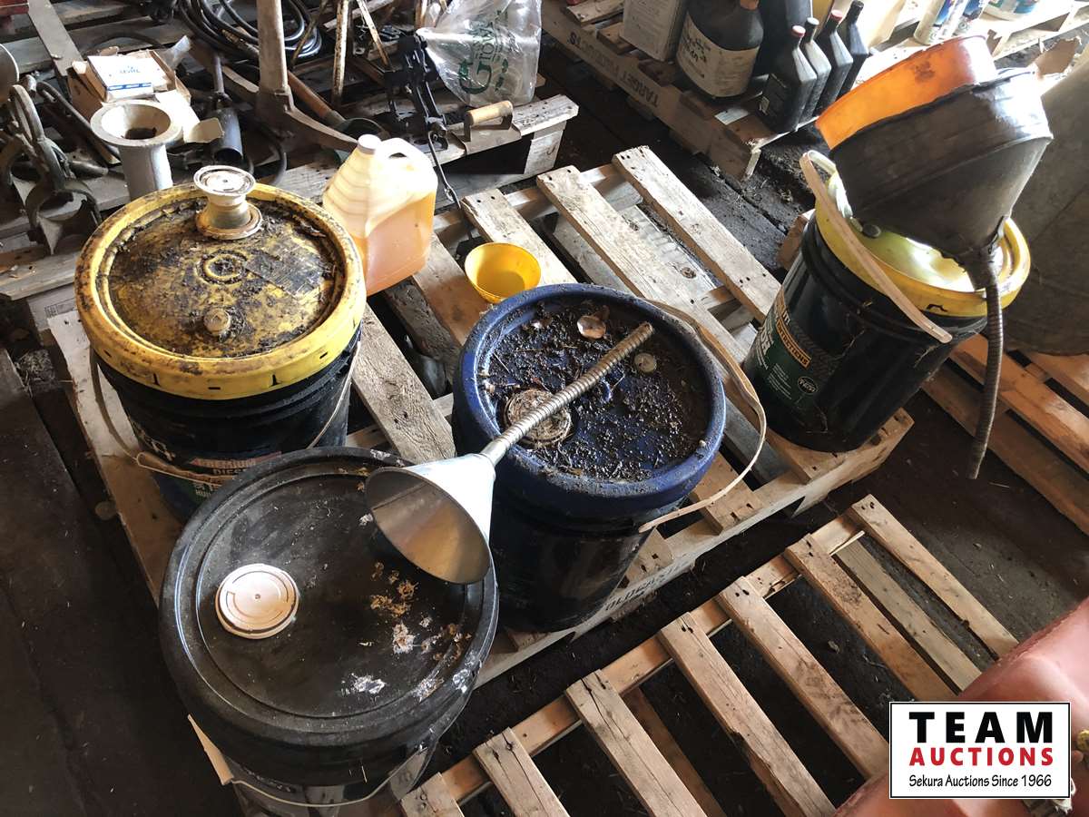 (4) part pails of oil, (4) funnels
