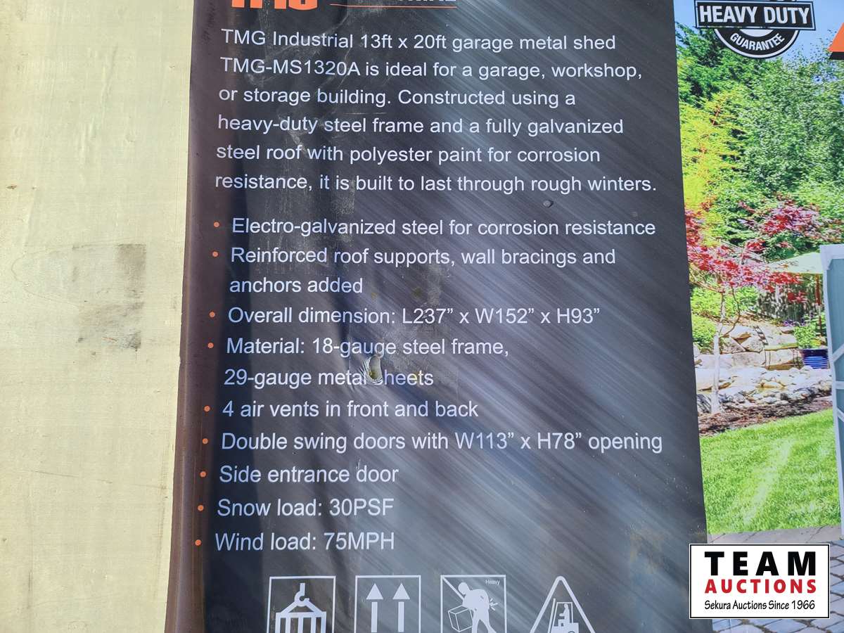 3817 TMG Industrial 10 Ft X 20 Ft Metal Shed Garage (Unused)