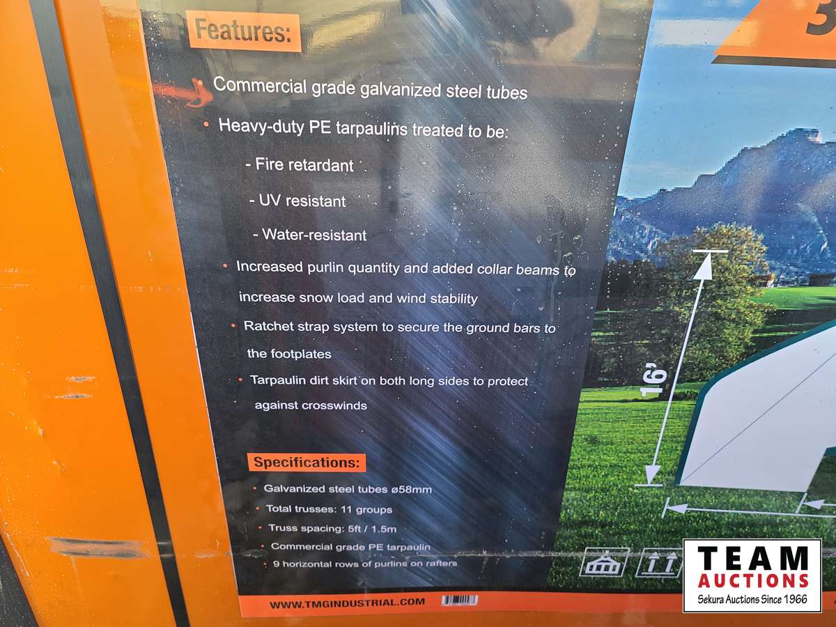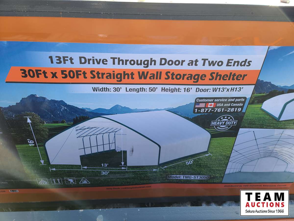 3856 TMG Industrial 30 Ft X 50 Ft Straight Wall Shelter (Unused)