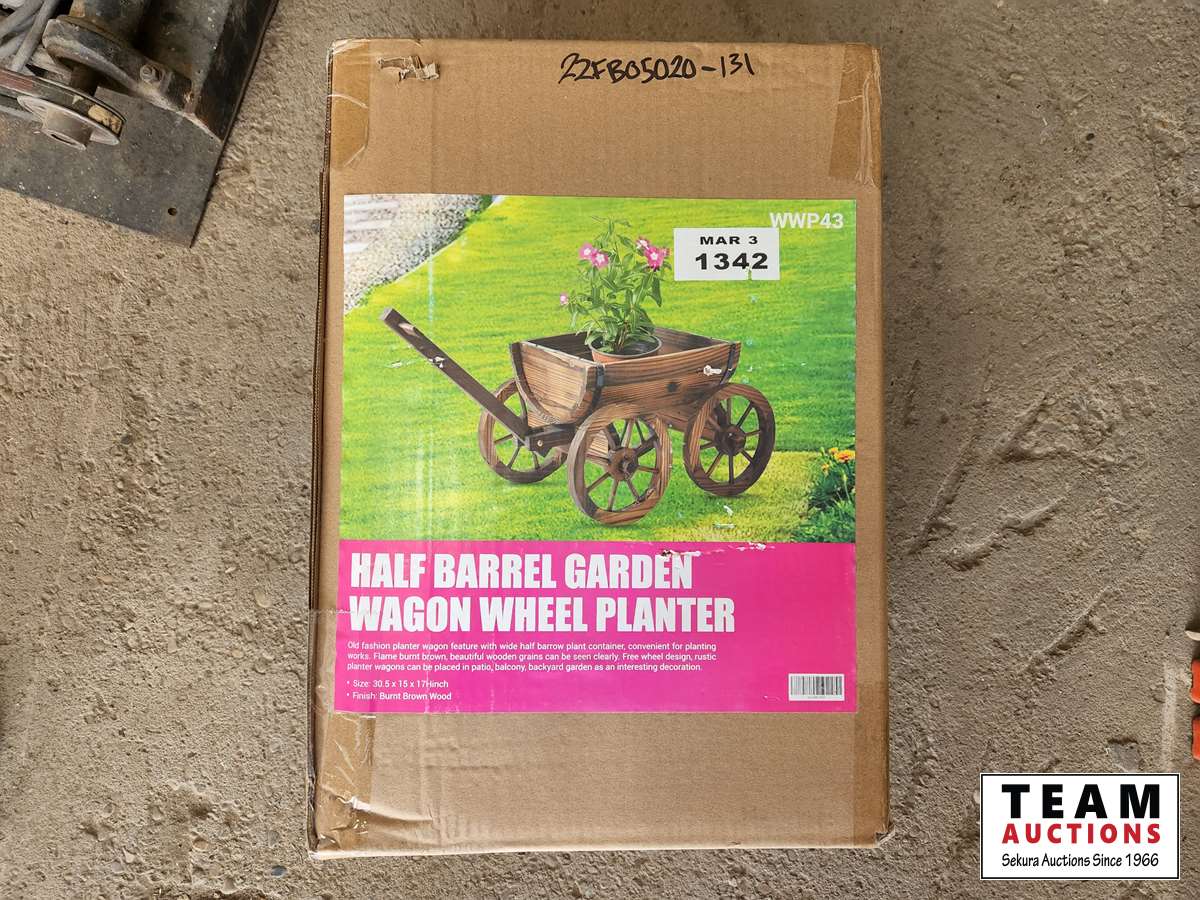 2066 1/2 Barrel Garden Wagon Planter (Unused)