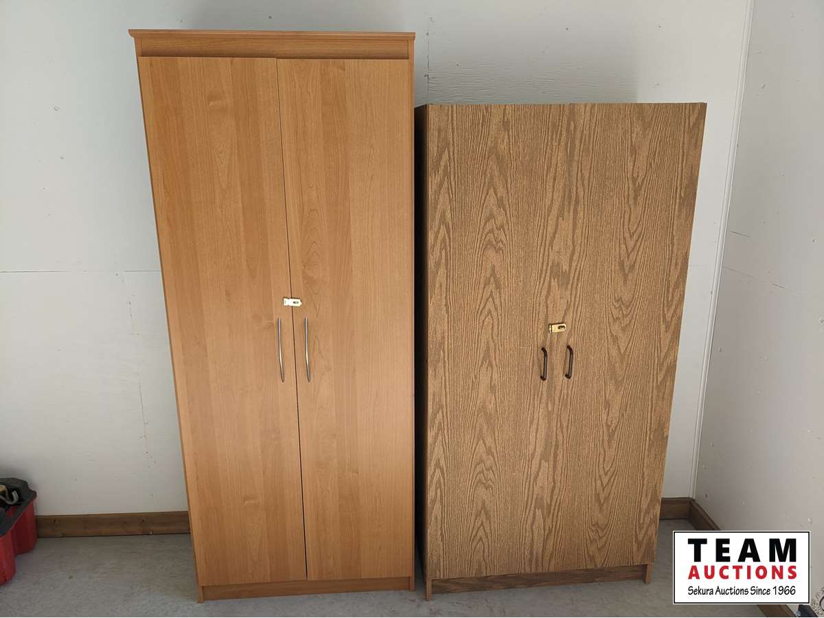 (1) 30 inch wide x 15 inch deep X 72 inch high, (1) 32 inch wide, X 16 inch deep X 66 inch high