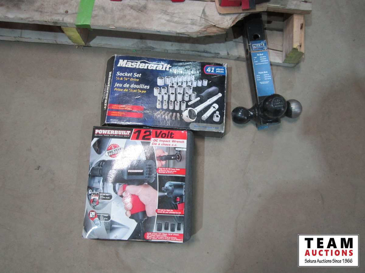 1324 (2) Jack Stands, 12V Impact, 3 Ball Hitch, Bottle Jack Mastercraft Socket Set