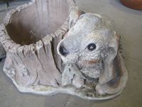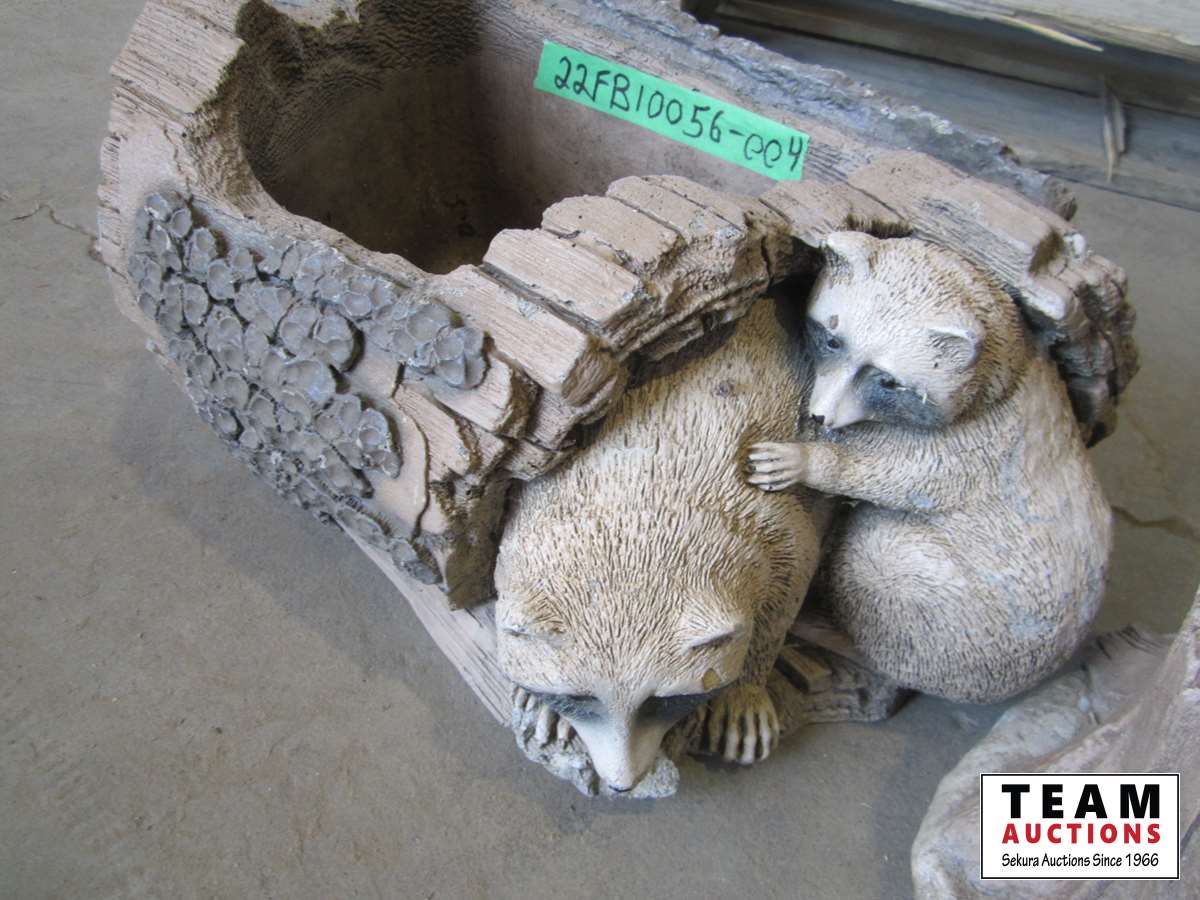 1259 Cement Rabbit and Raccoon Planters