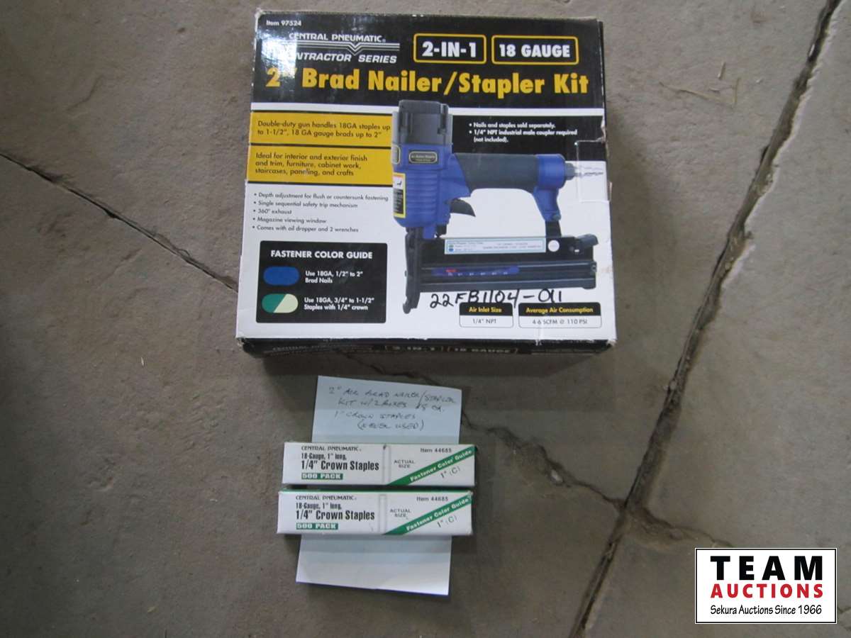 1176 Central Pneumatic 2 Inch Brad Nailer/Stapler Kit
