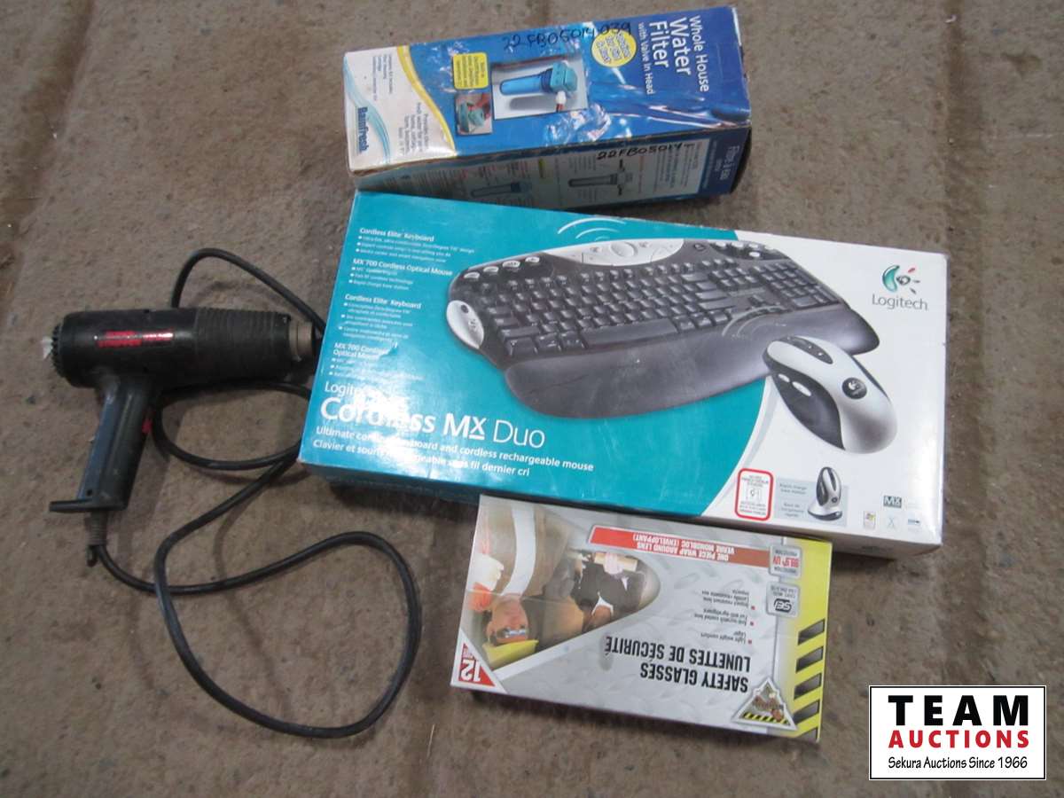 Keyboard, water filter, heat gun, safety glasses