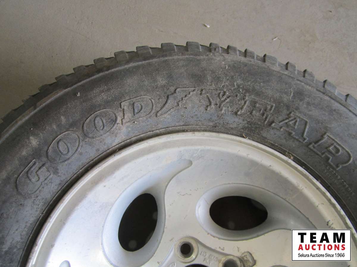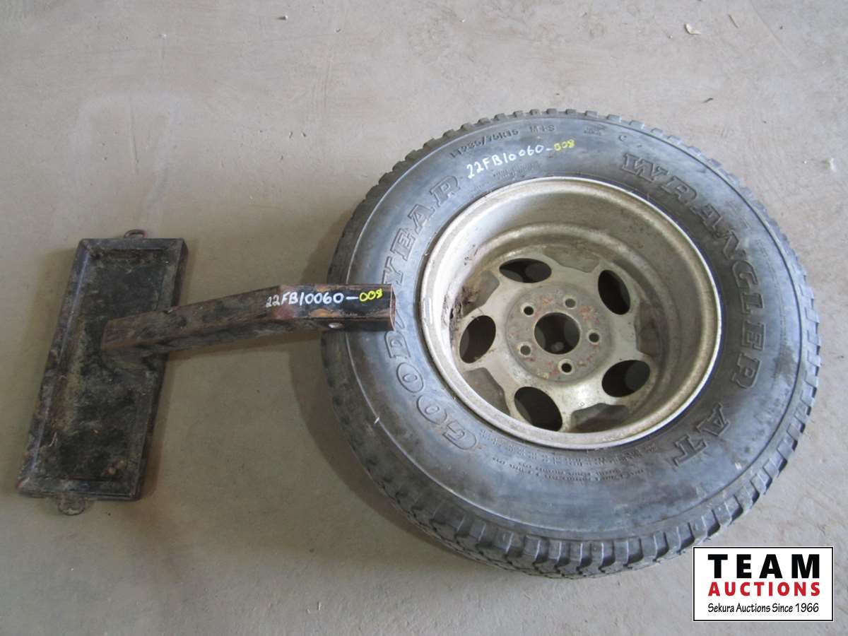 (1) tire with aluminum rim, hitch mount jerry can holder