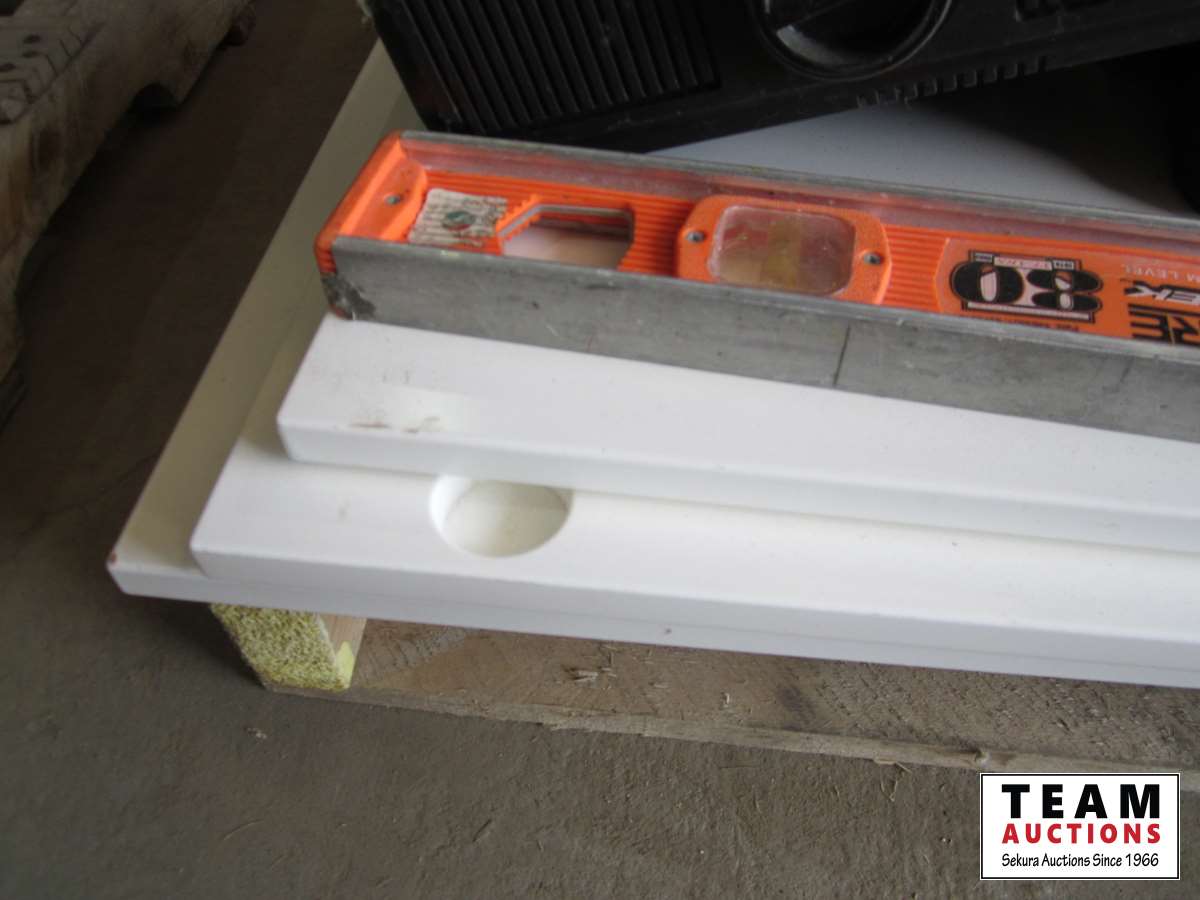 door handles, (3) Ikea door panels, straps, radio, and tile cutter