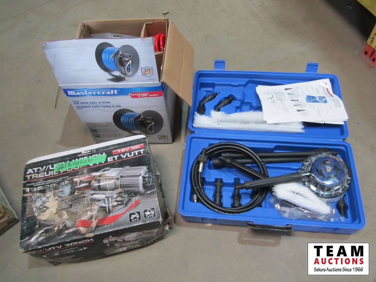 Mastercraft air hose reel, pressure washer accessory kit, 3500 lb 12 V winch