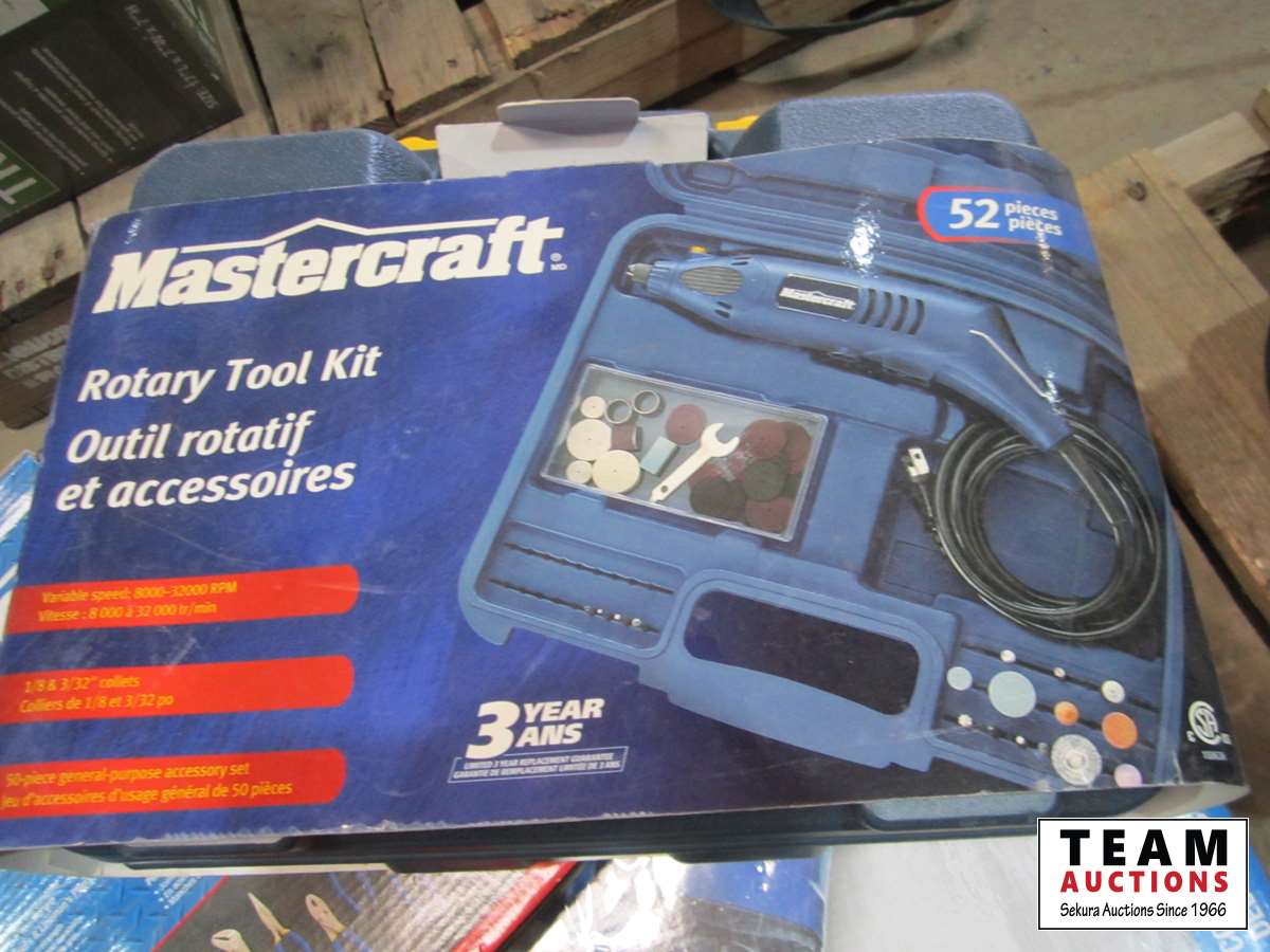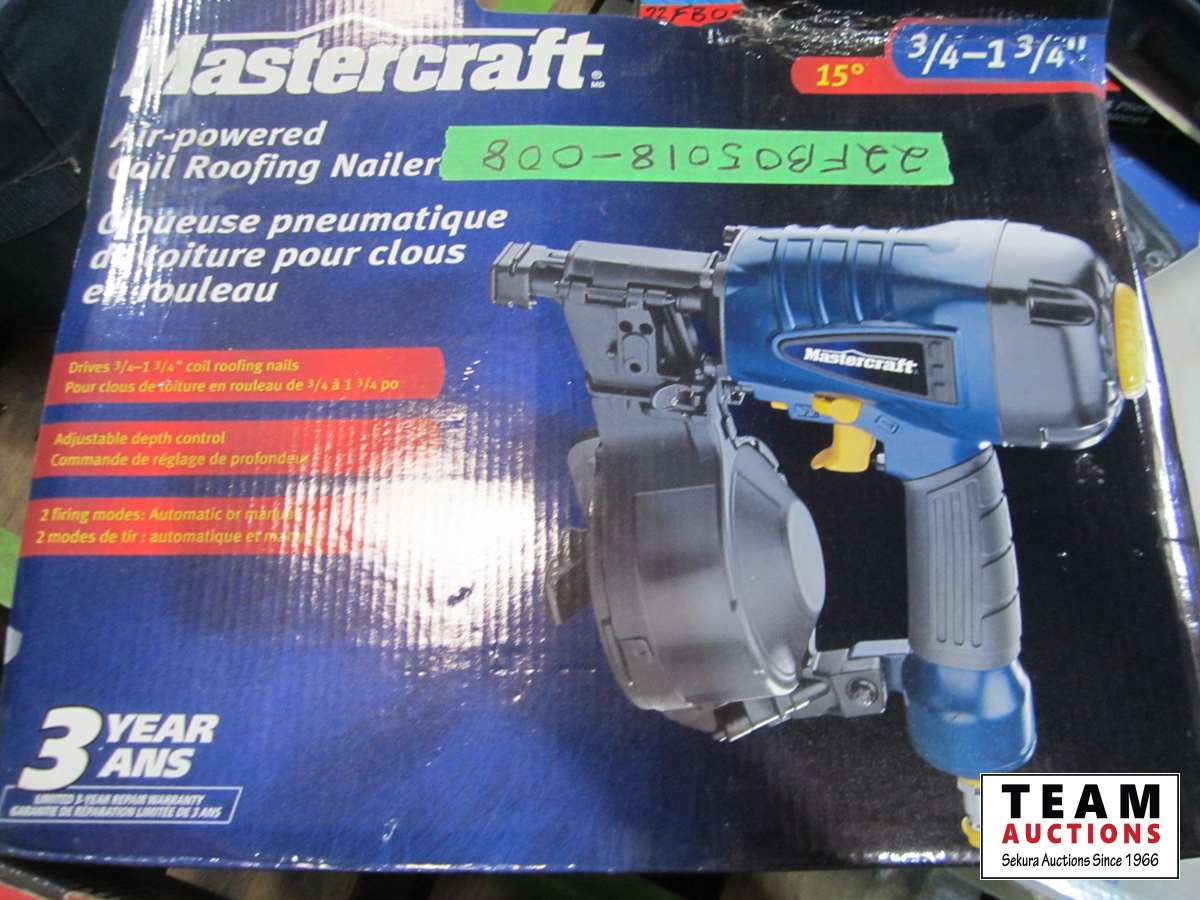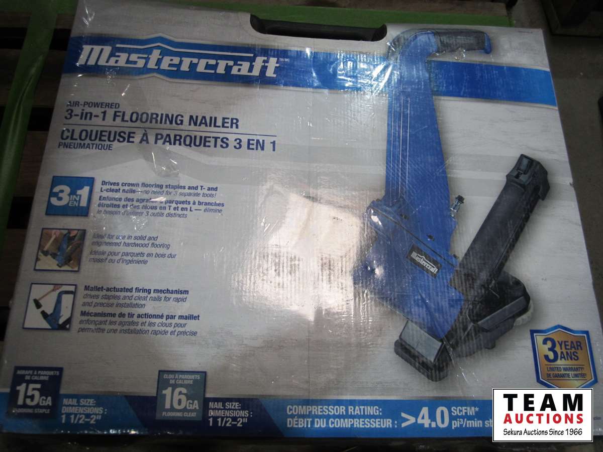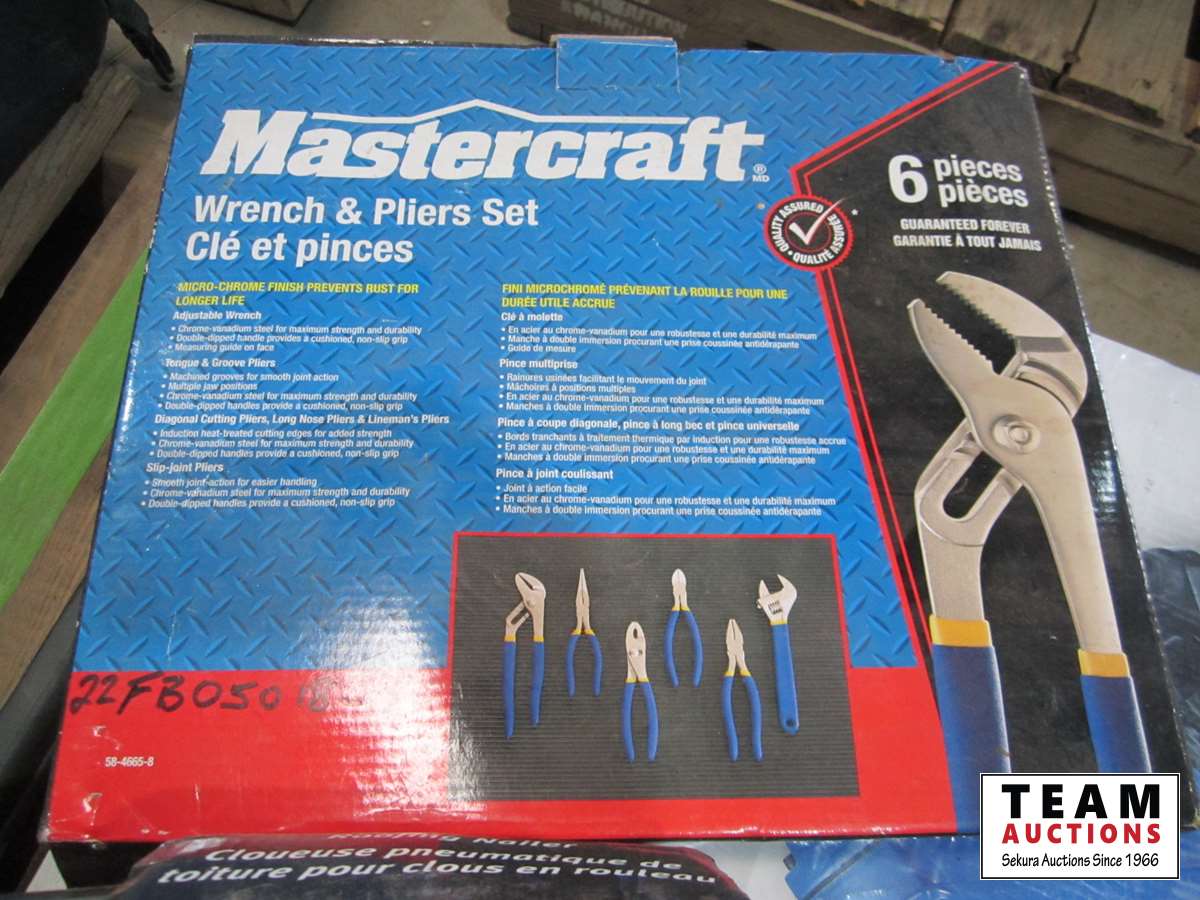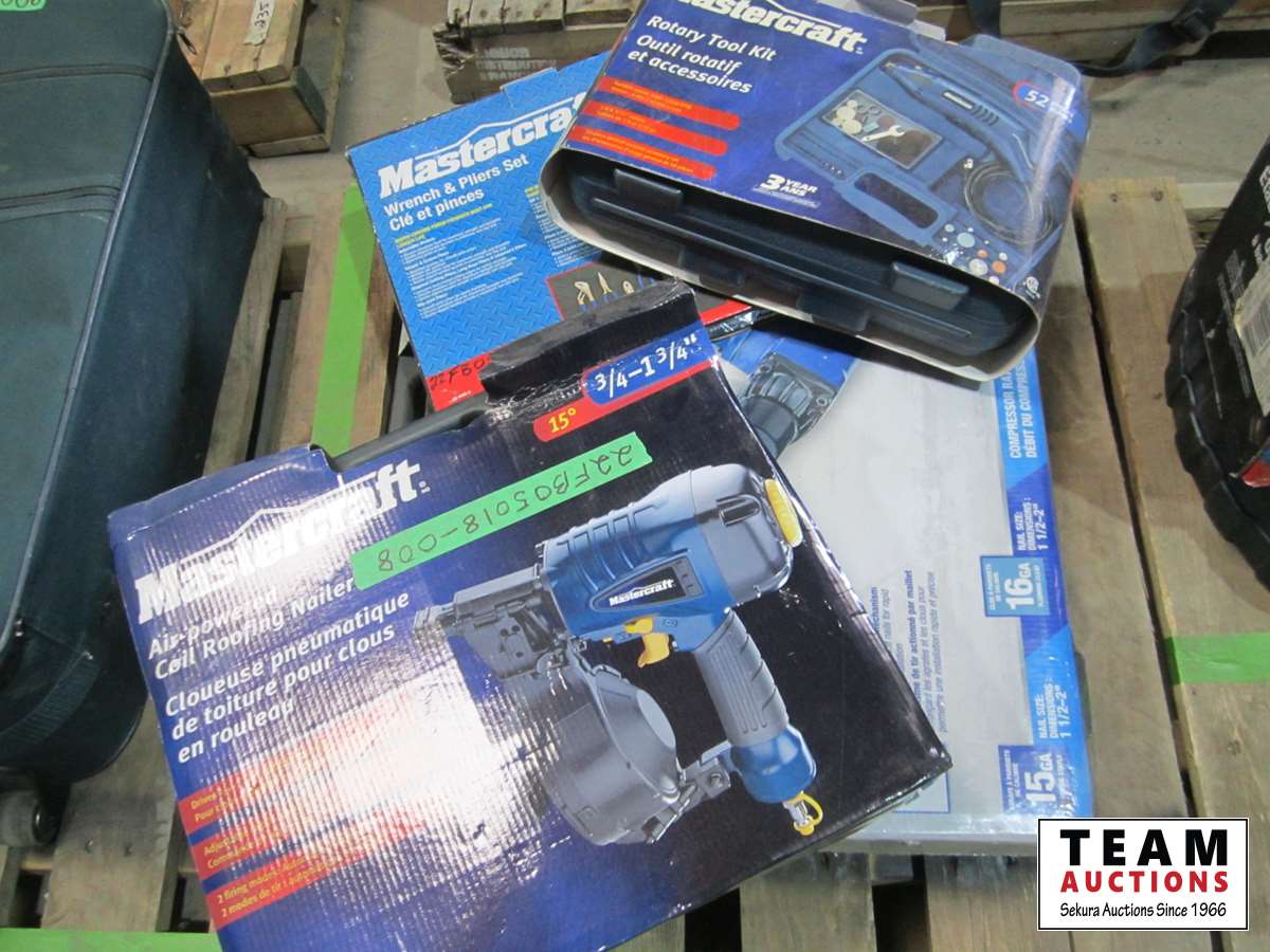 Air roofing nailer, rotary tool kit, 6 piece Mastercraft wrench & plier kit, MC flooring nailer