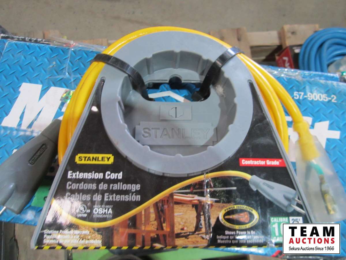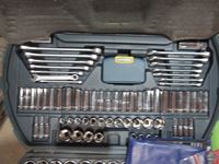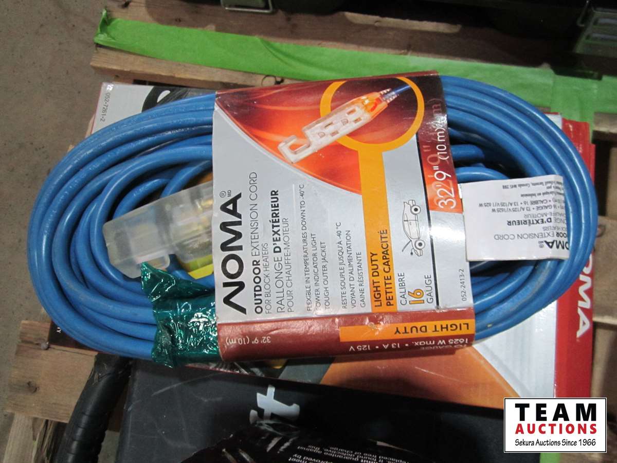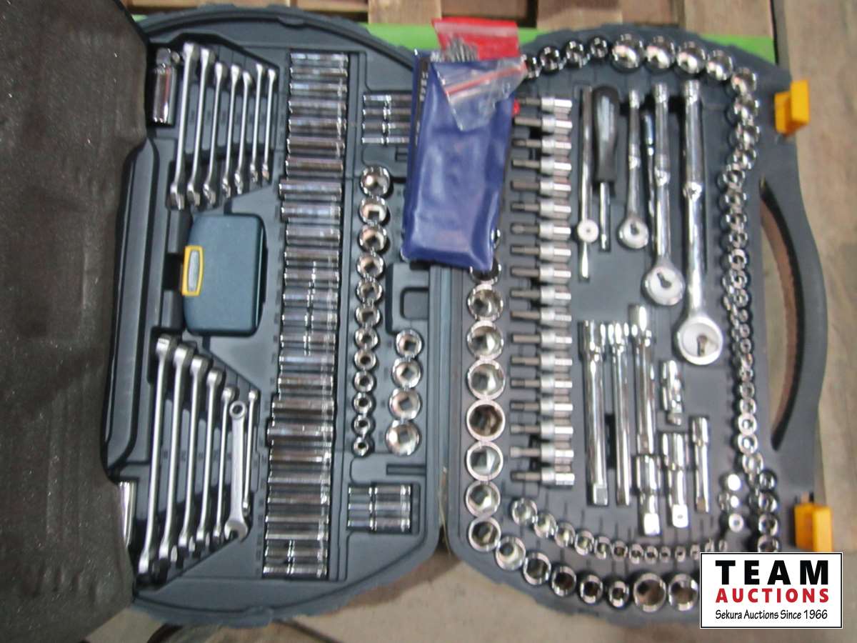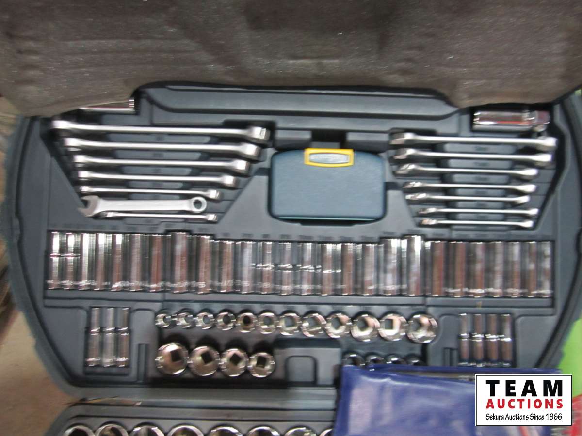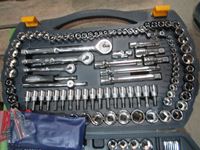 Mastercraft 56 inch vise, extension cords, power bar, Mastercraft socket set
