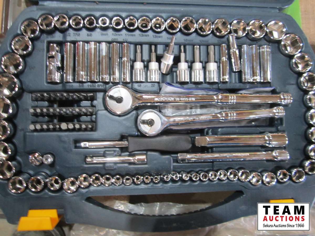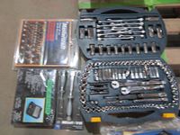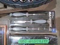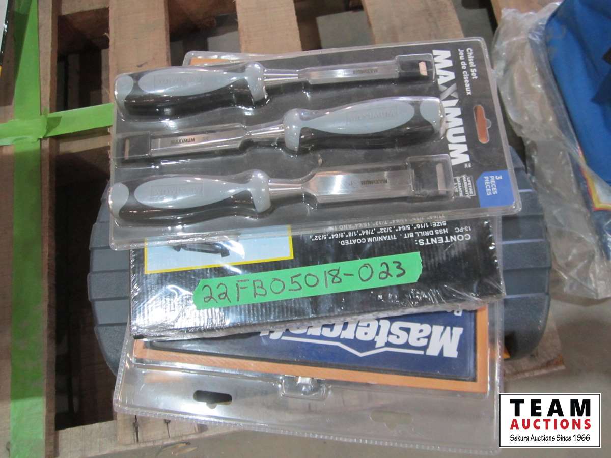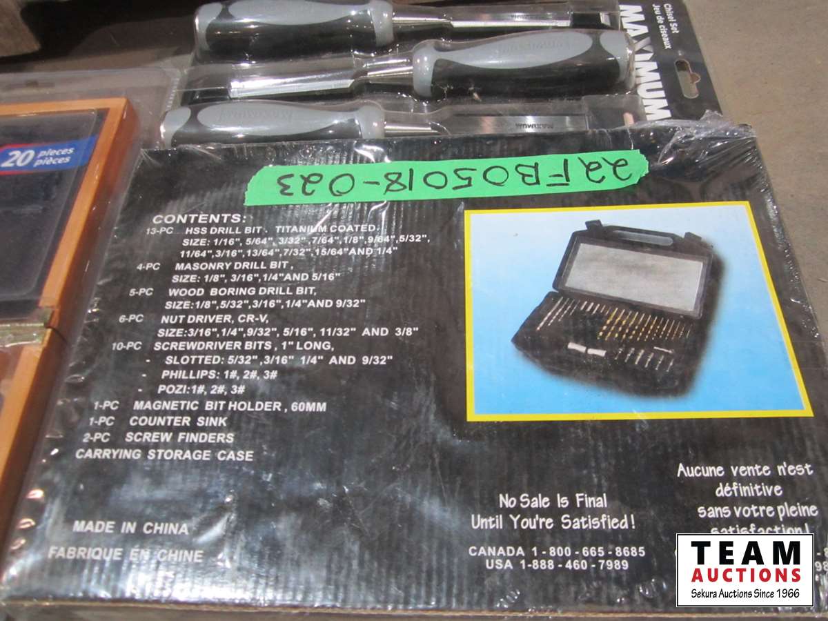 Chisel set, drill bit set, Mastercraft router bit set, socket set
