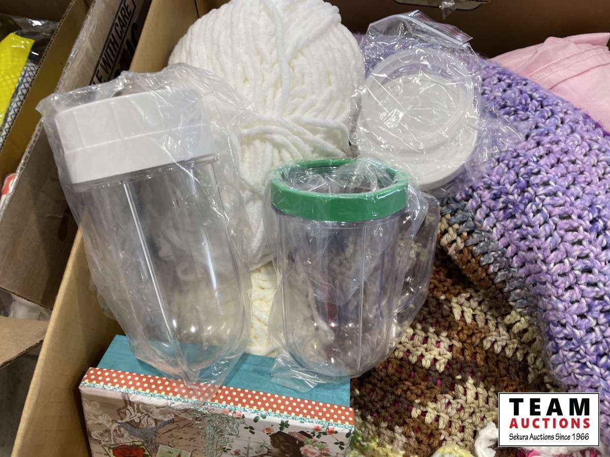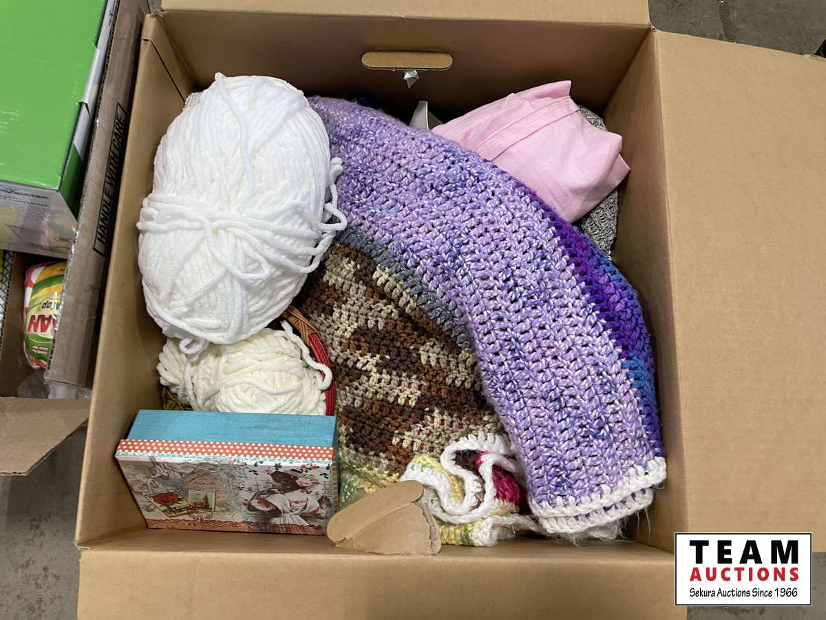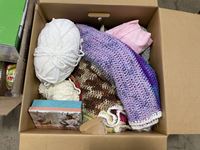 1935 Qty of Knitting Wool, Knitted Blankets, Mop, Cleaning Supplies