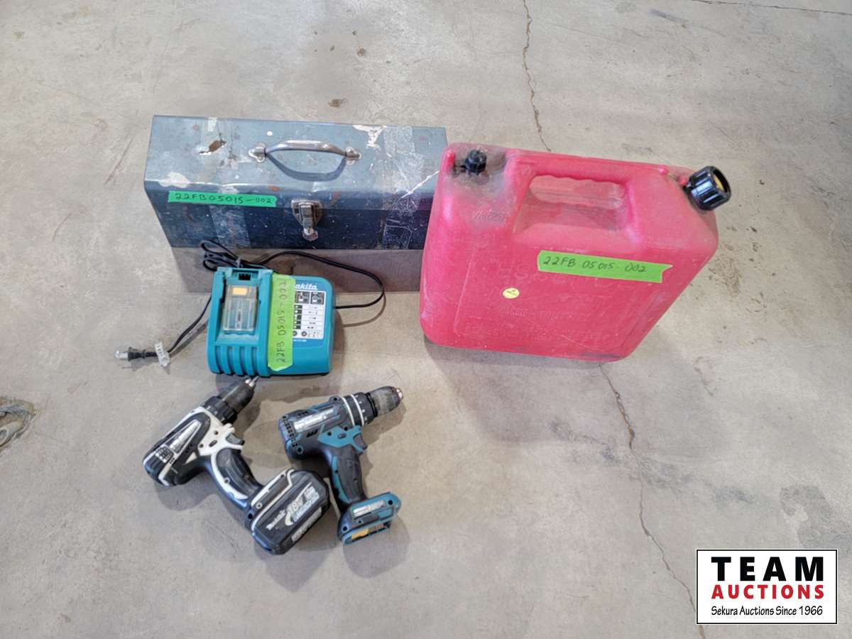 Tool box, jerry can, drills