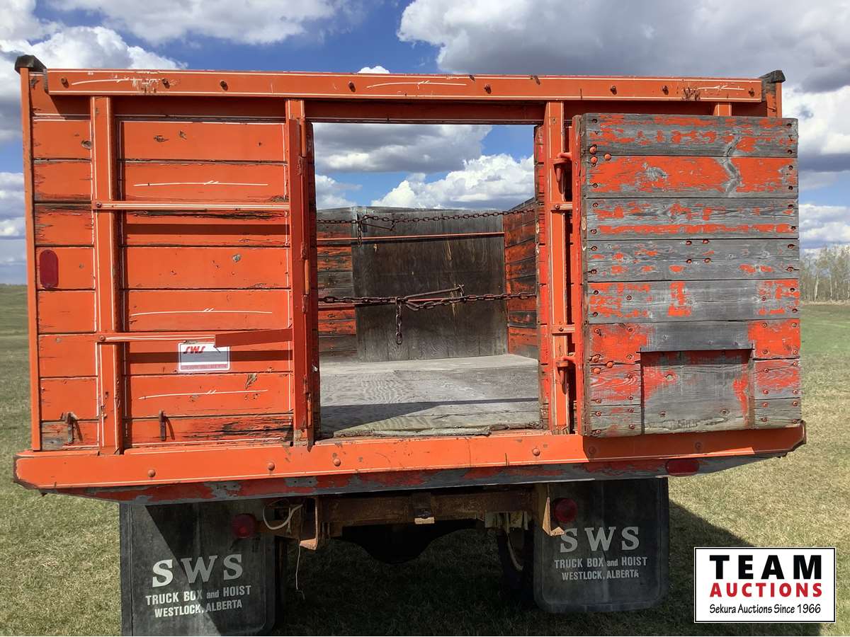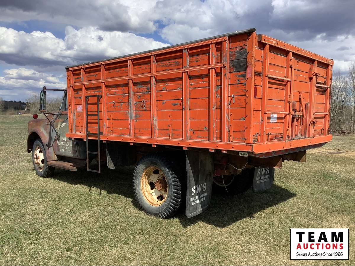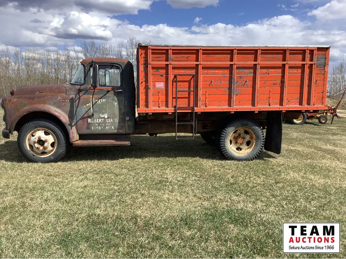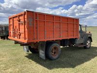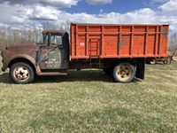 This truck was running when parked a few years ago, the inside of the cab needs a seat and a clean up. If Ivan has time he may try to get it up and running if not it will sell as is. Has a good grain box and hoist. Body is still in good shape.