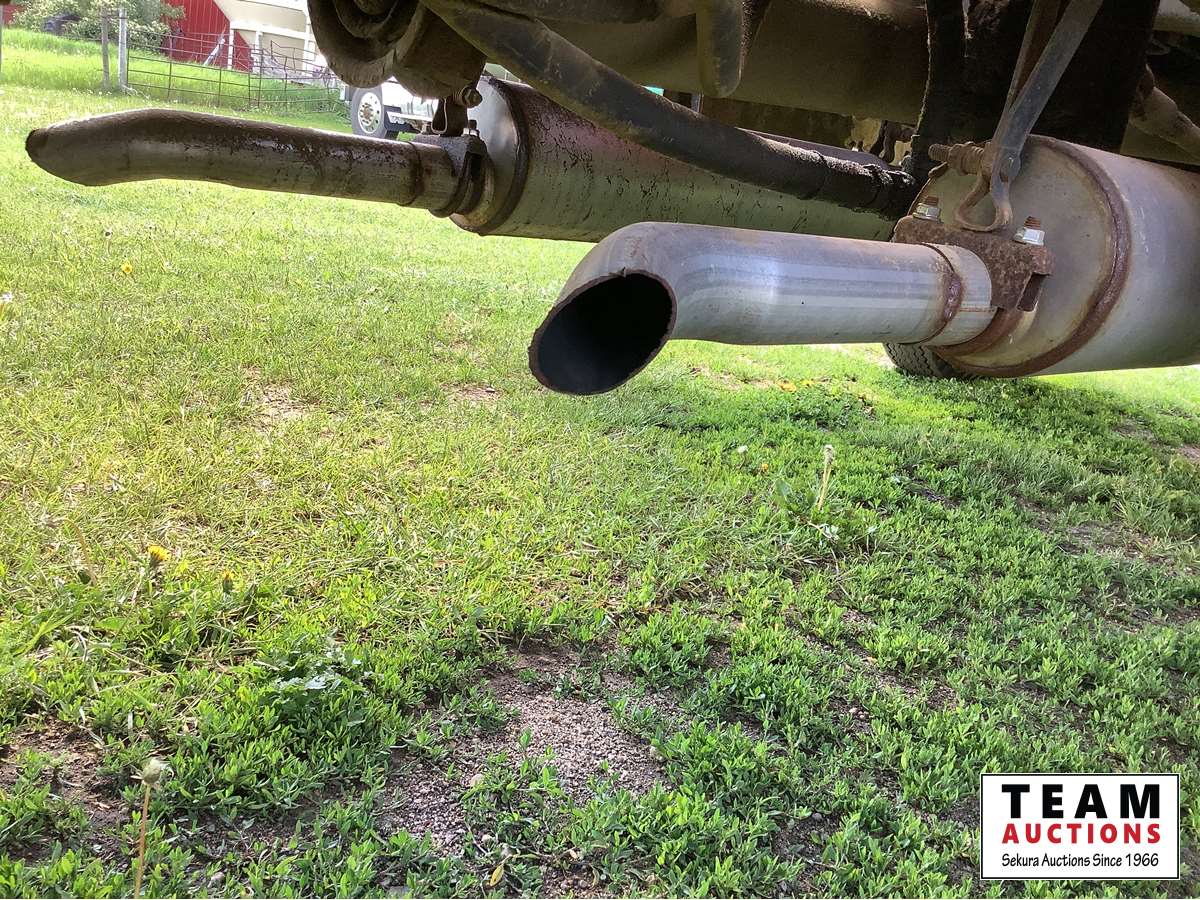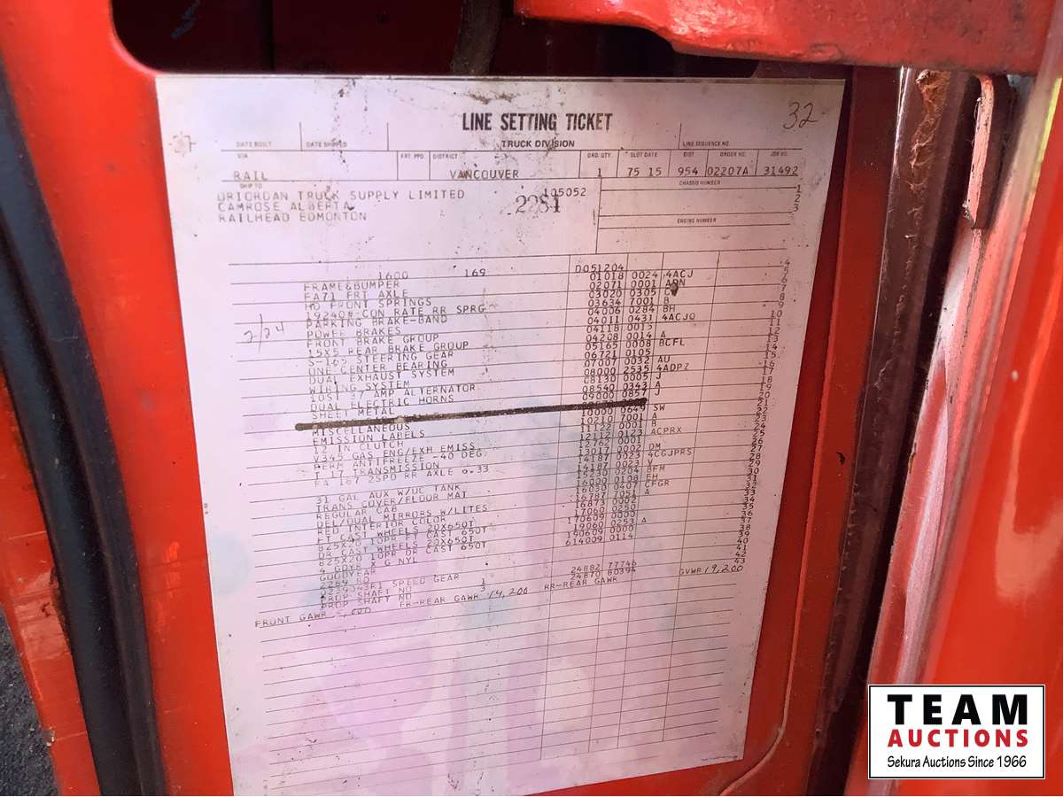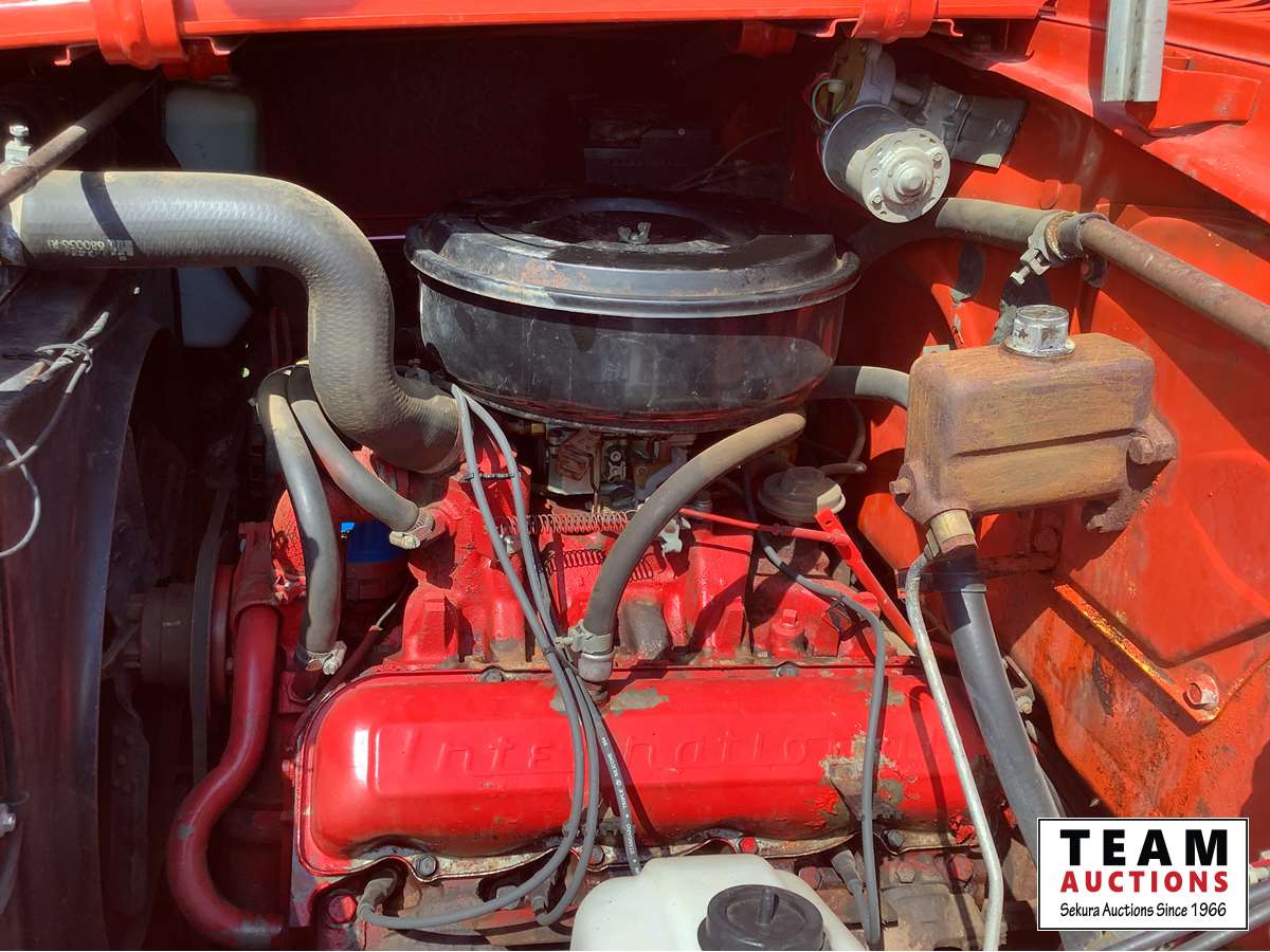 345 V8 engine, 4 x 2 speed transmission, auxiliary fuel tank, original 8.25 x 20 Goodyear tires, dual mufflers, 15 ft Camrose lumber box and twin cylinder Renn sizer hoist