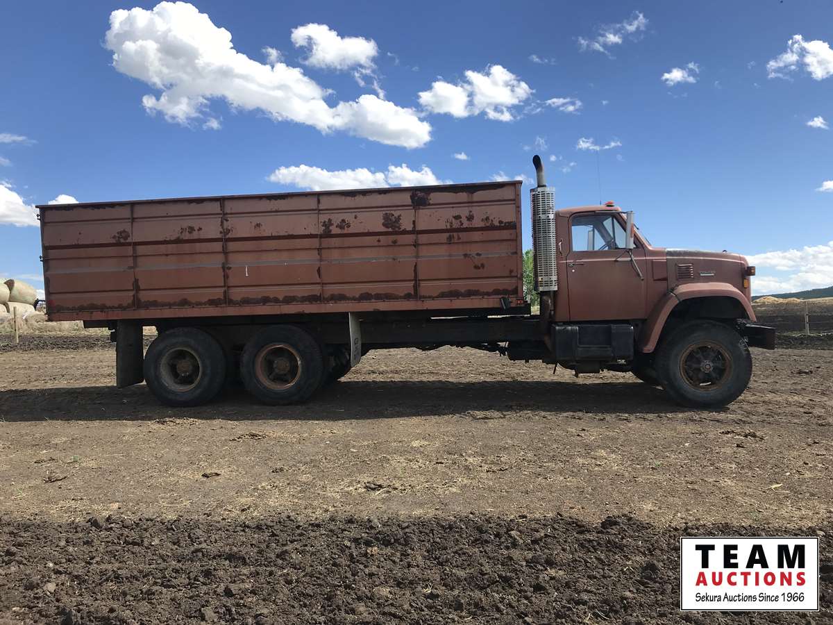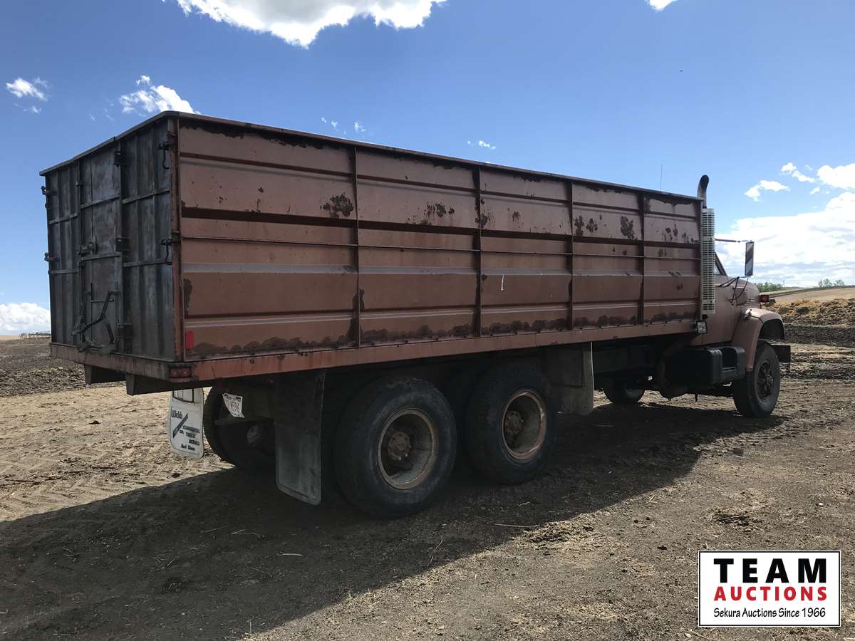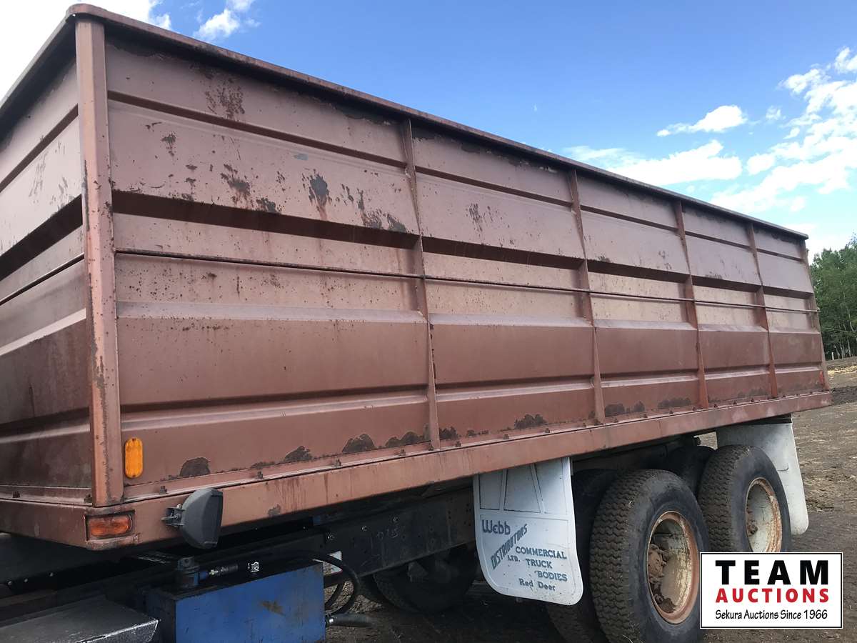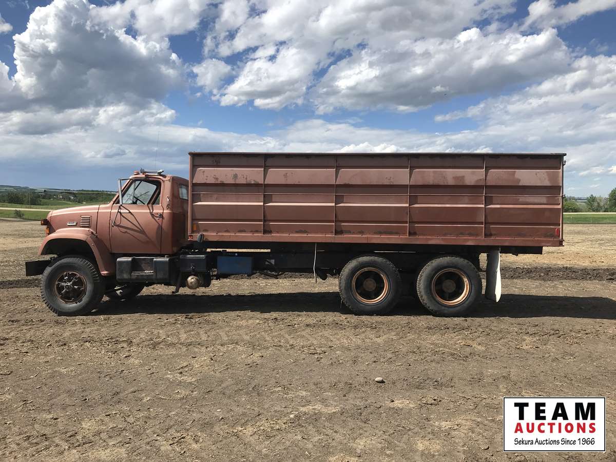 466 Detroit diesel engine, 8 speed transmission, differential lock, Hendrickson suspension, air brakes, 20 ft steel box, Harsh dual cylinder 3 stage hoist, 20 inch tires