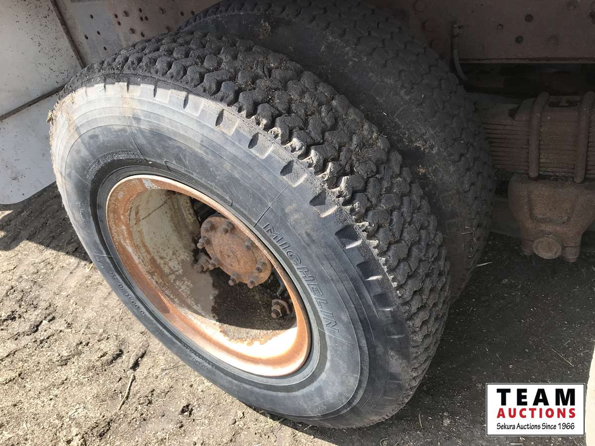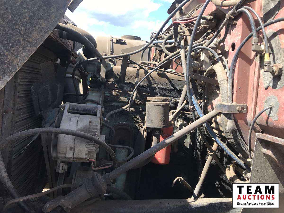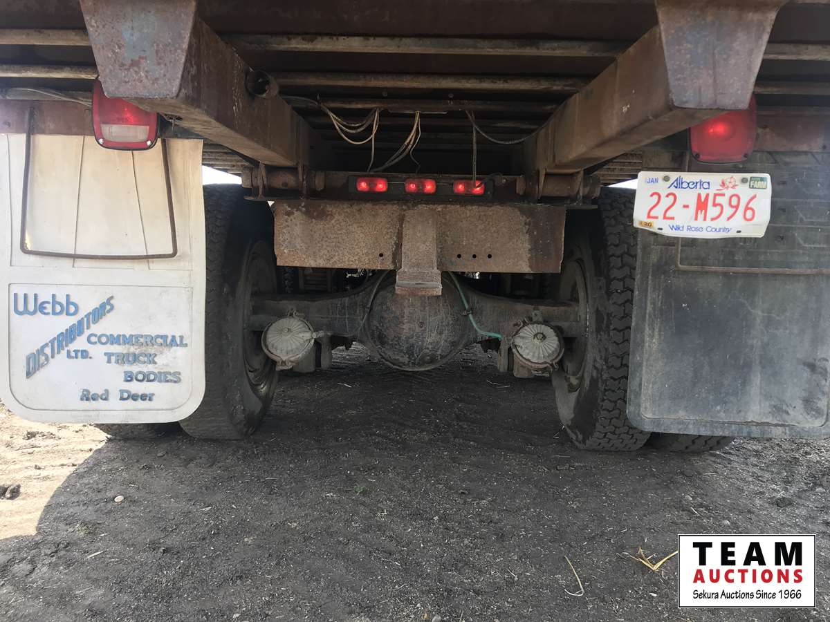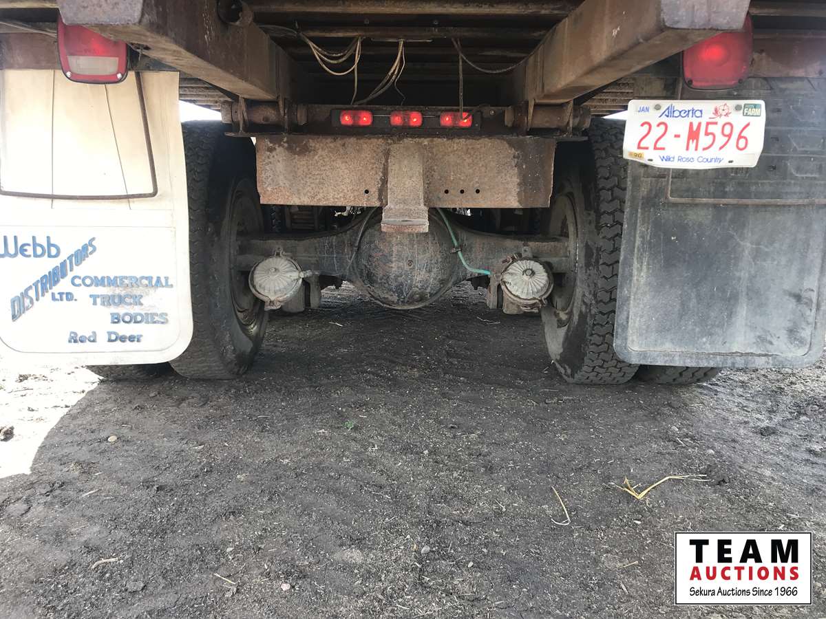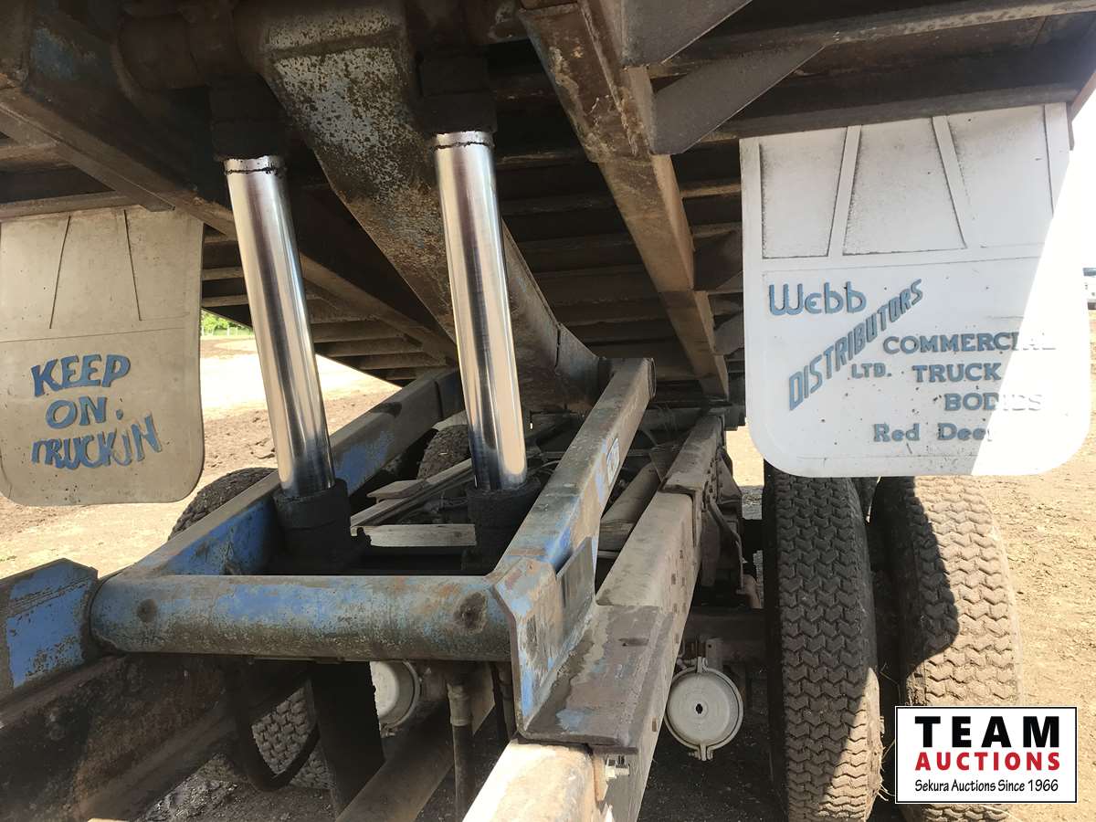 466 Detroit diesel engine, 8 speed transmission, differential lock, Hendrickson suspension, air brakes, 20 ft steel box, Harsh dual cylinder 3 stage hoist, 20 inch tires