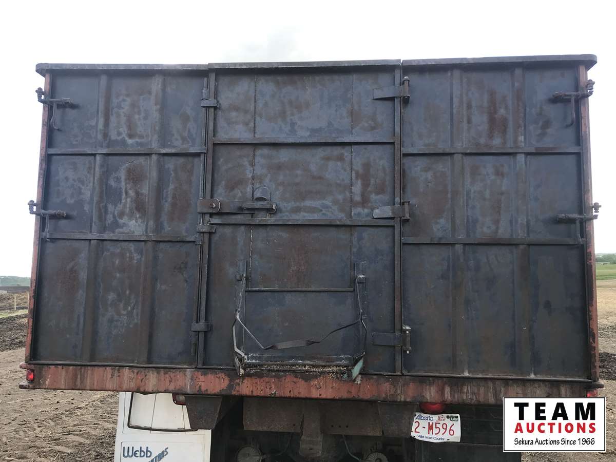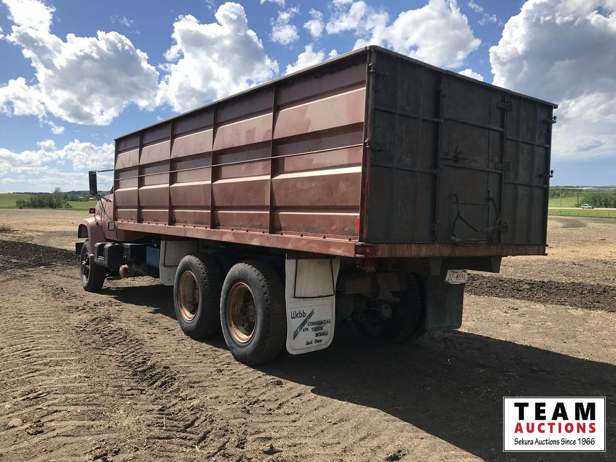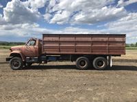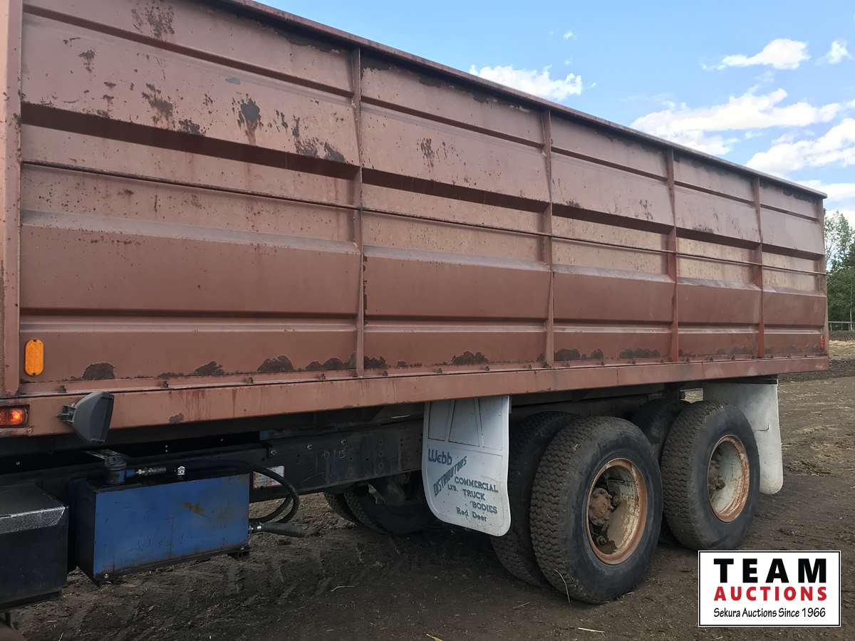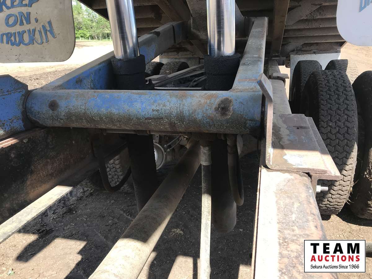 466 Detroit diesel engine, 8 speed transmission, differential lock, Hendrickson suspension, air brakes, 20 ft steel box, Harsh dual cylinder 3 stage hoist, 20 inch tires