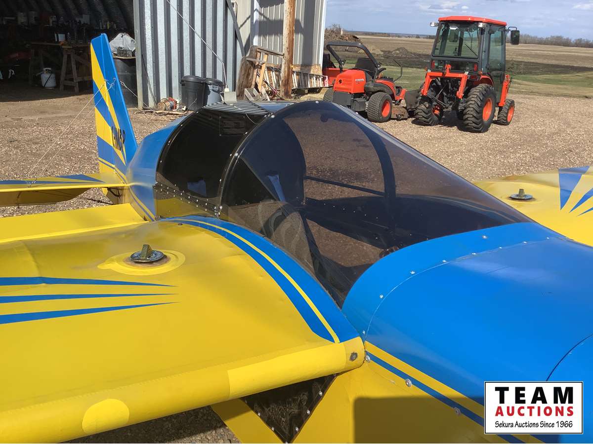 Always stored inside, new batteries, engine has 629 hrs on a complete in frame, dual ignition has 129 hrs, 0 hrs on the following, 3 blade propellor, electric starter, rear tail wheel, center of gravity and balance, 1 hrs on the following, pulse fuel pump, electric fuel pump, Gasolator. The airplane was originally built by Lawrence Froehir from Melville New York USA. Matt drove to Lawrence's place, bought the airplane and imported it into Canada a few years ago. This is a nice ultralight air plane, Matt will start the unit up but no test runs allowed. Thanks Clayton