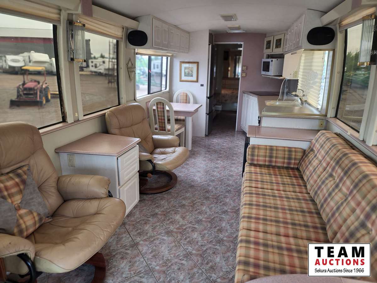 Detroit diesel rear engine, Allison automatic transmission, full hydraulic levelling system, full bathroom, new stainless double door fridge and freezer (in 2021), new microwave in 2020, all new tires in 2020, new Induction cook top stove in 2020, all new engine batteries in 2021, has a diesel generator, wabasto furnace, back up camera, Satellite TV, stereo system, dish washer, Ice machine, All manuals for everything on the unit