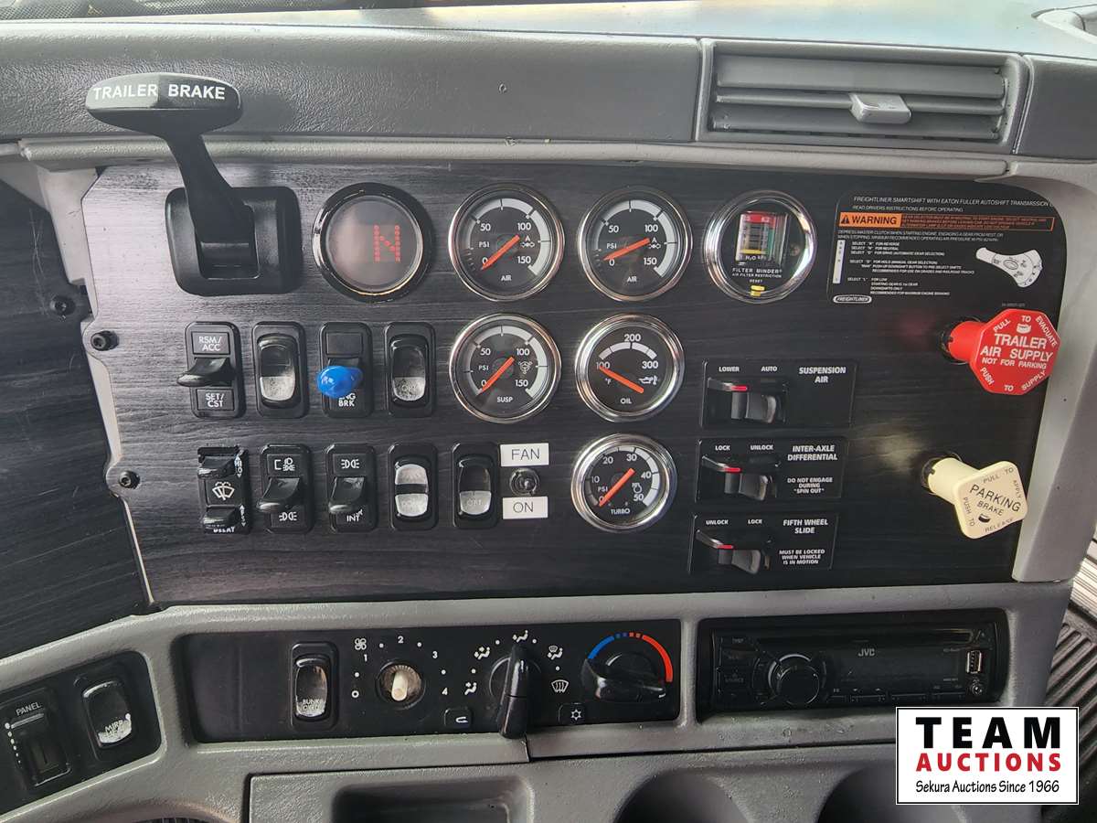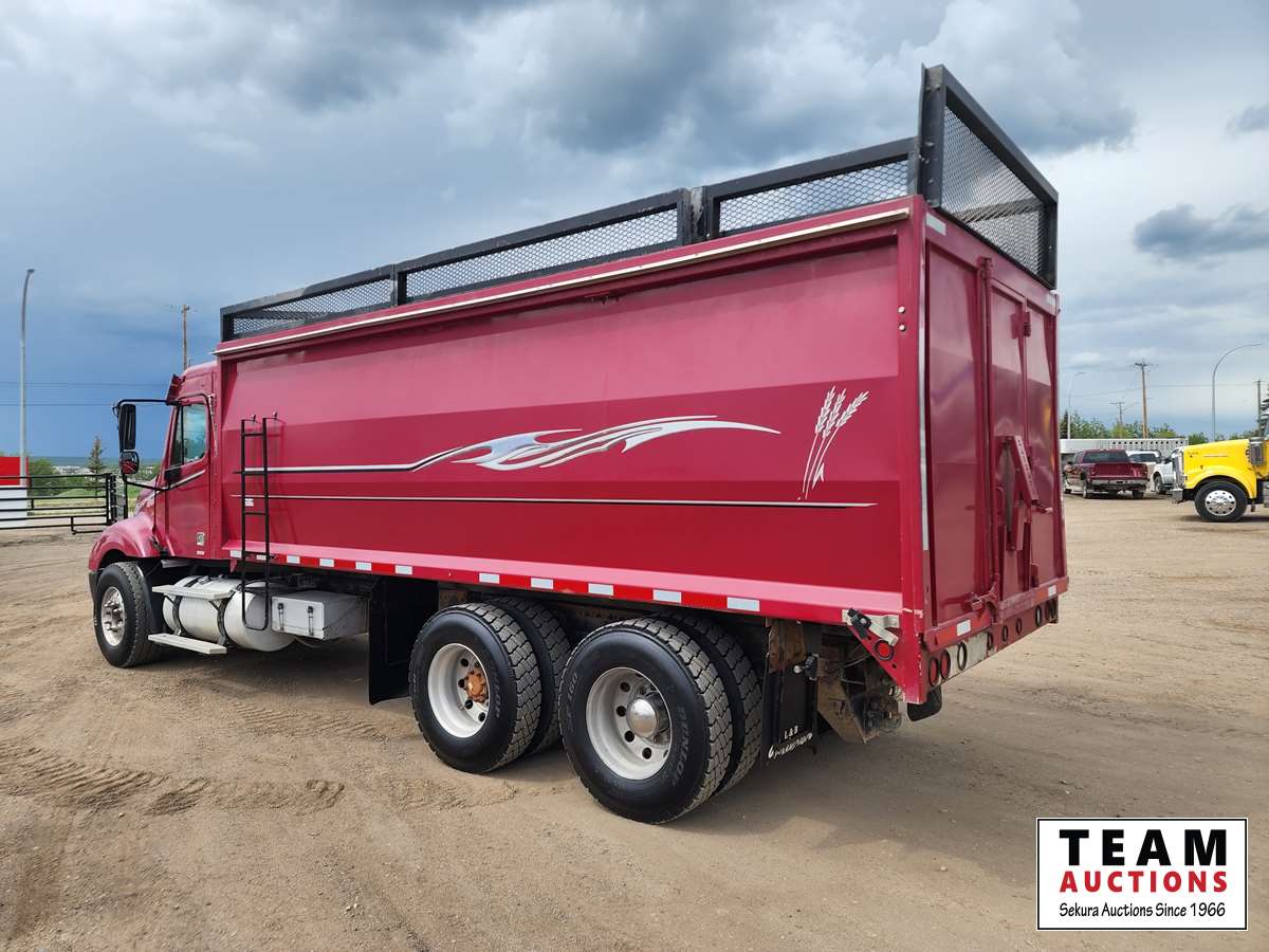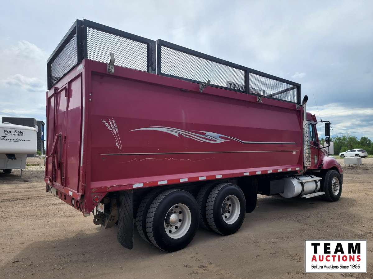 Caterpillar C12 engine, automatic smart shift transmission, air ride suspension, locking differential, 20 ft Cascade box, silage racks, pintle hitch, roll up tarp, aluminum rims, 11R22.5 tires