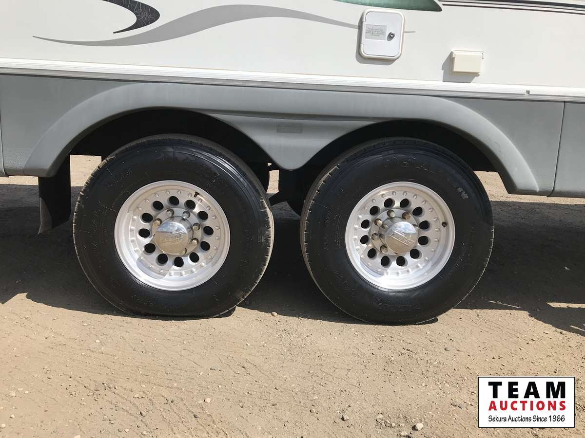 (1) slide out, fridge, stove, microwave, dinette, rocker, washroom w/shower, tv, DVD player, A/C, satellite radio, outside speakers, outside showers, rear hitch, new batteries, fully insulated can be used year round, large outdoor mat, levelling blocks, lawn chairs, 50 ft extension cord, new tires, aluminum wheels