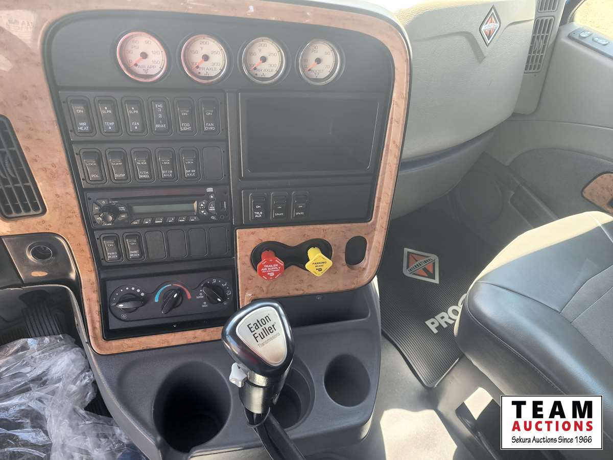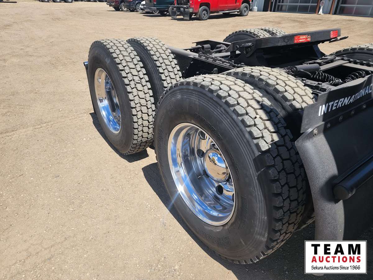 Maxxforce 13 475 HP engine, engine brake, Eaton Fuller 18 speed transmission, RT46-160, 13,200 lb front, 46,000 l b rears, 3.91 ratio, full lockers, 51 inch mid rise roof sleeper, 220 inch WB, 24.5 inch tires on aluminum rims