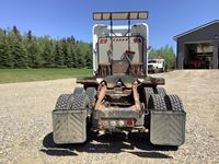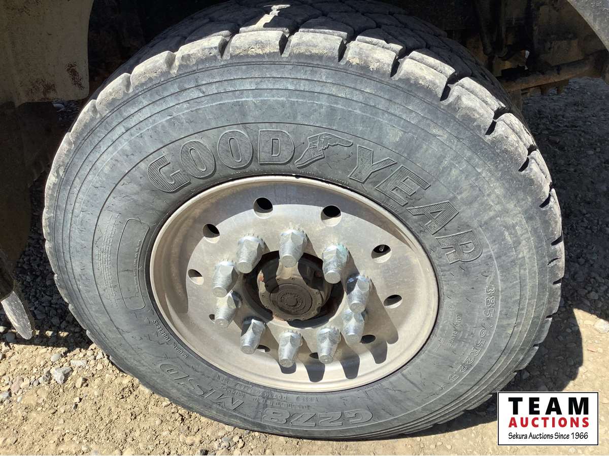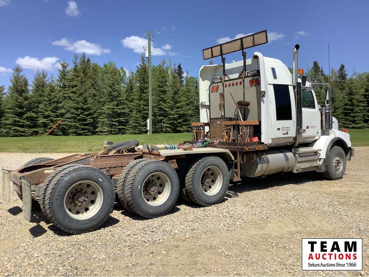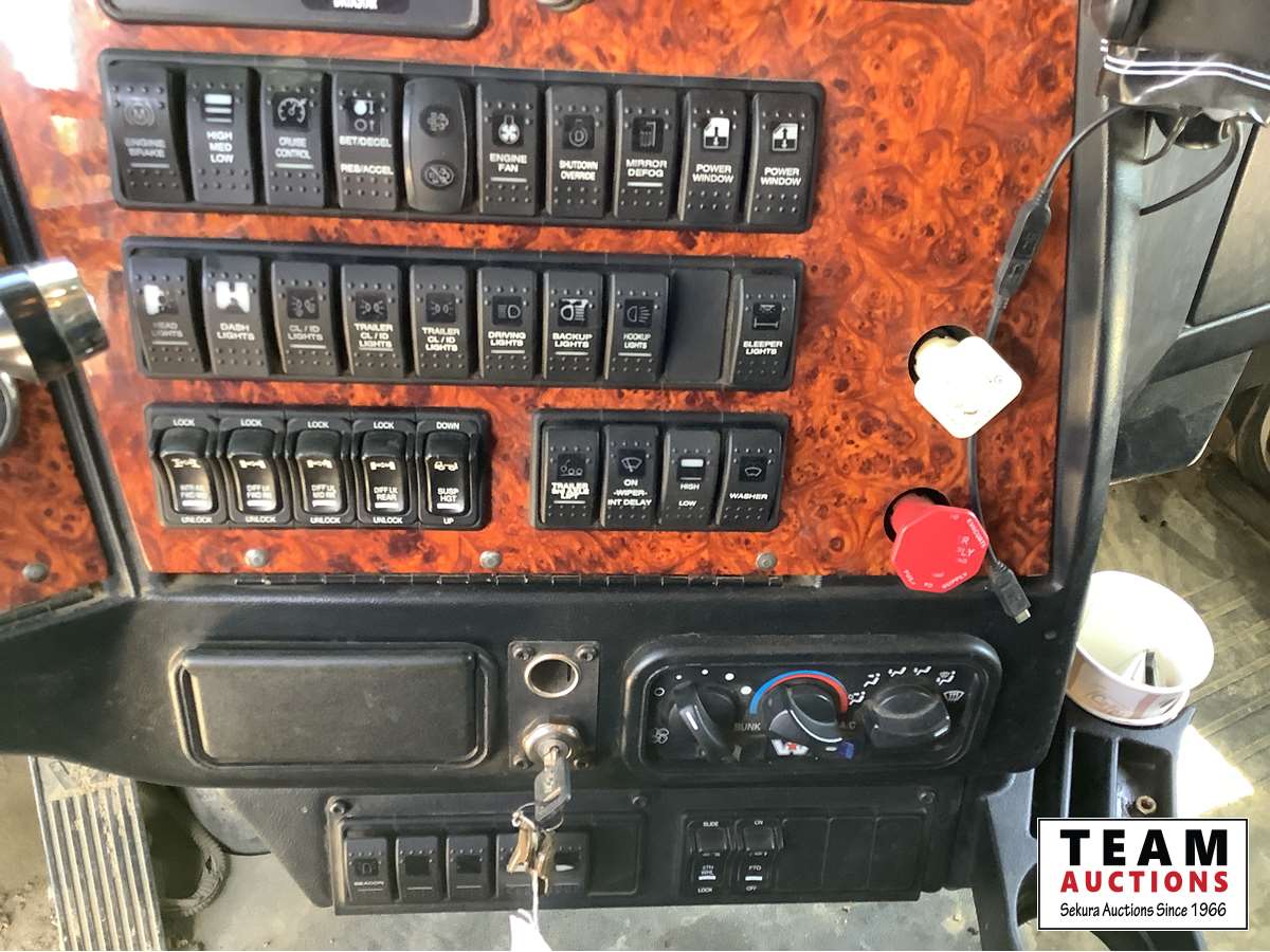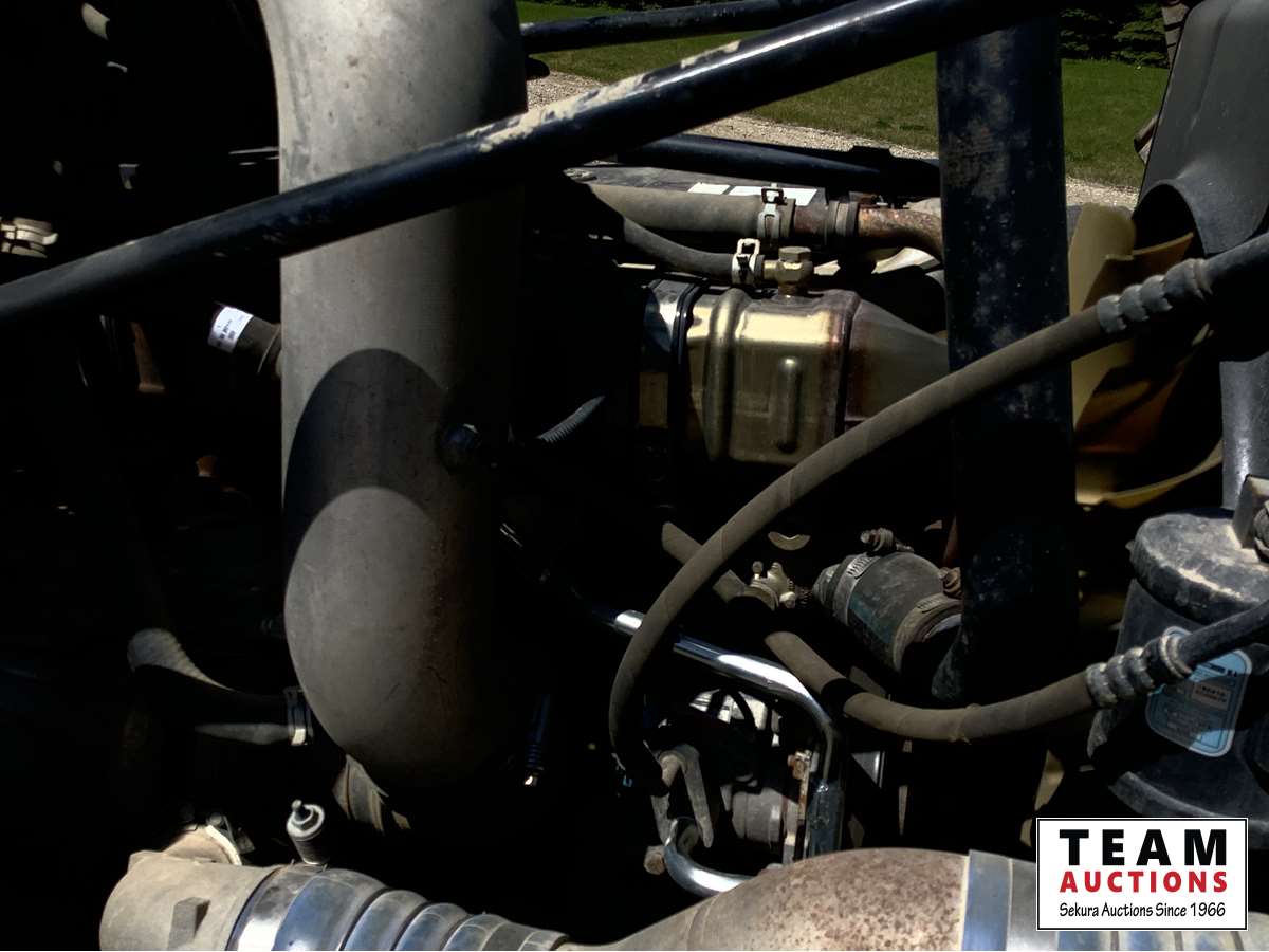 DD15 engine, Eaton Fuller 18 speed transmission, 14,200 lb front axle with twin steering box’s, air ride suspension, full locking rear differential, air slide fifth wheel, headache rack, wide load sign, beacon lights, set of chains and boomers, 385/65R22.5 front tires, real good 11R24 rear tires, aluminum rims