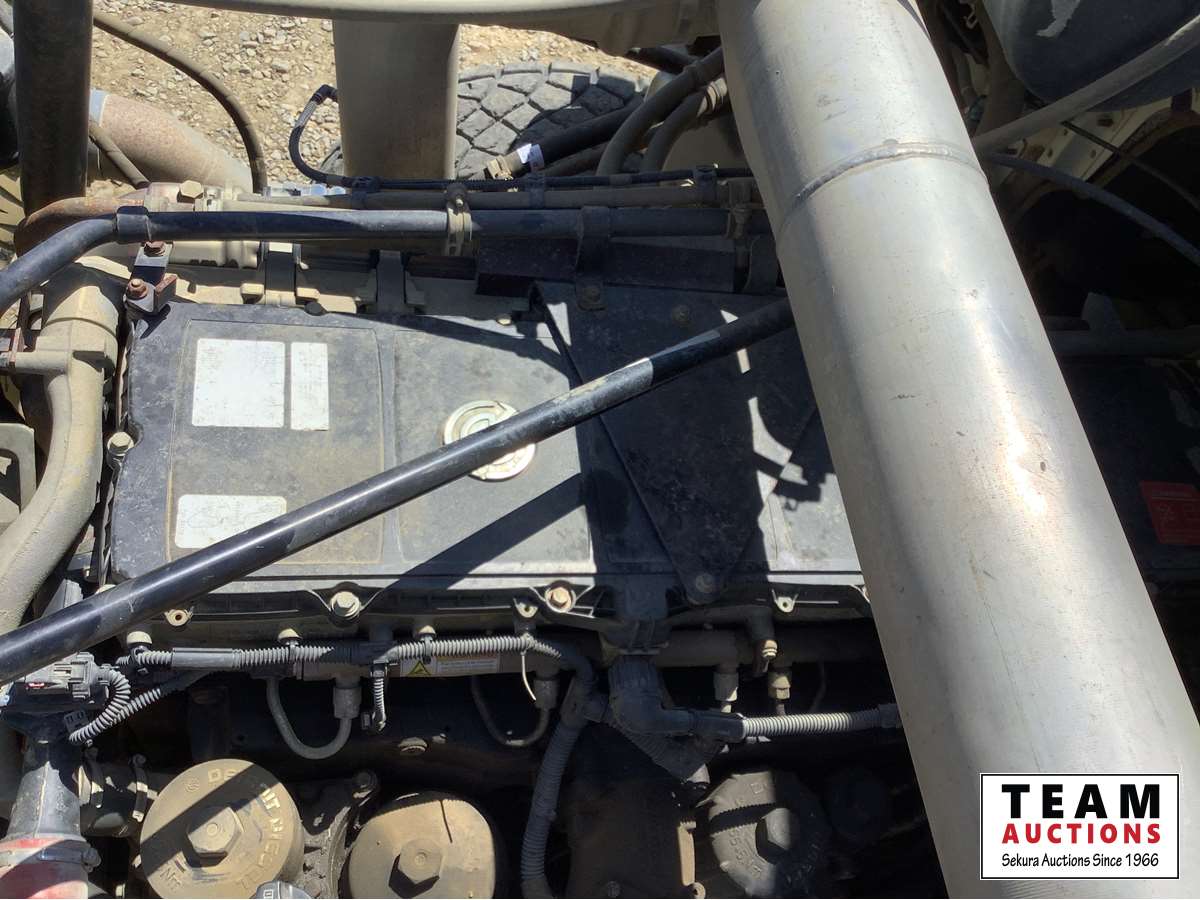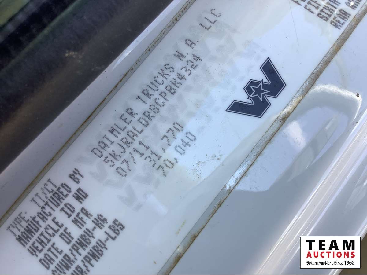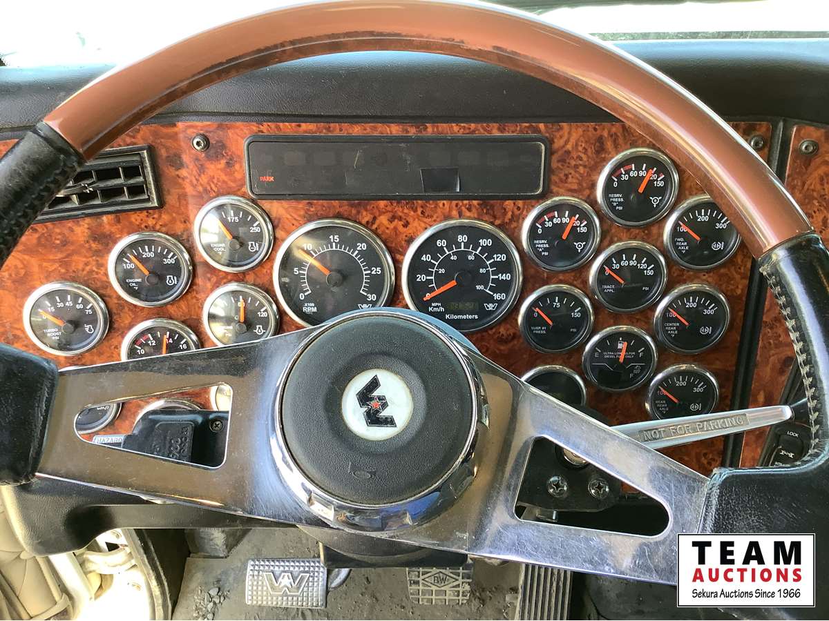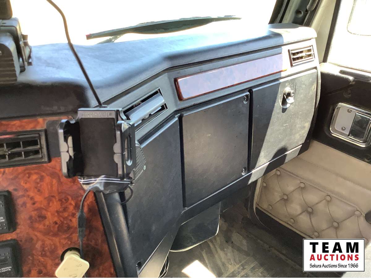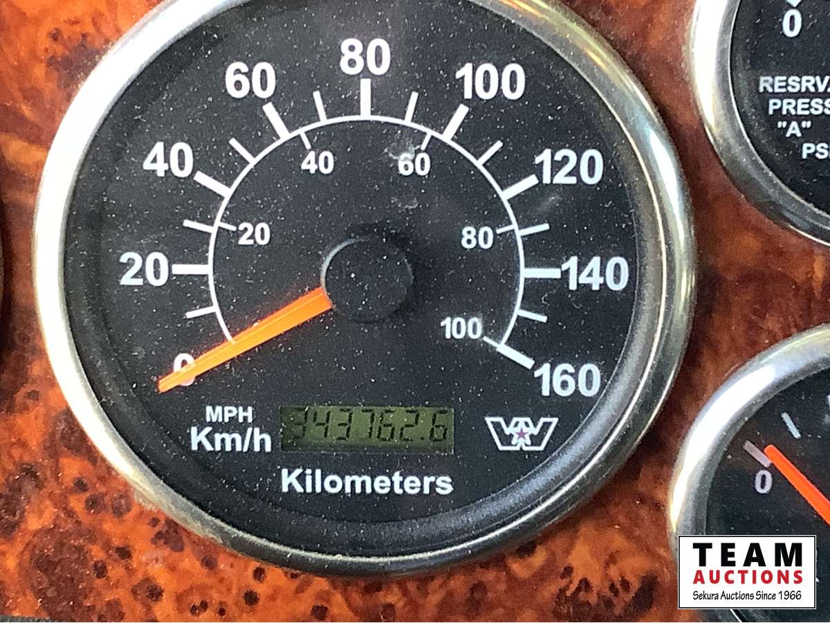 DD15 engine, Eaton Fuller 18 speed transmission, 14,200 lb front axle with twin steering box’s, air ride suspension, full locking rear differential, air slide fifth wheel, headache rack, wide load sign, beacon lights, set of chains and boomers, 385/65R22.5 front tires, real good 11R24 rear tires, aluminum rims