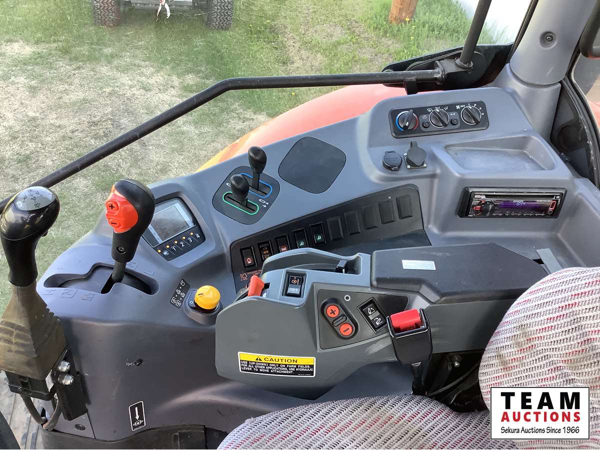 24 speed transmission, A/C cab, radio, 3 PT Hitch, 540/1000 PTO, rear dual hydraulic couplers, rear wheel inside weights, Leon’s model 37-10 hydraulic angle dozer blade, joystick controls, 520/70R 38 rear tires