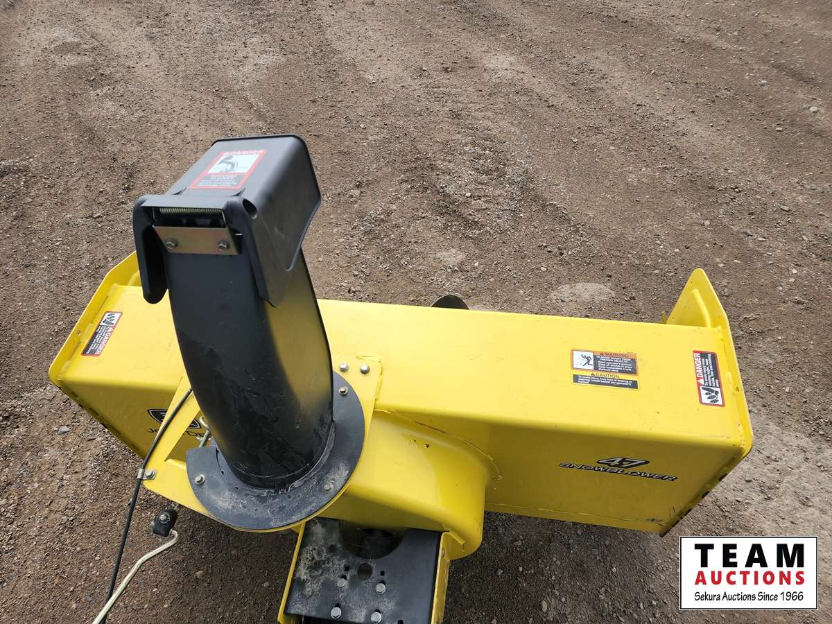 47 inch Snow blower attachment, Kawasaki 25 HP engine, hydrostatic transmission, 4 wheel steering, rear weights, 54 inch mower deck on mover