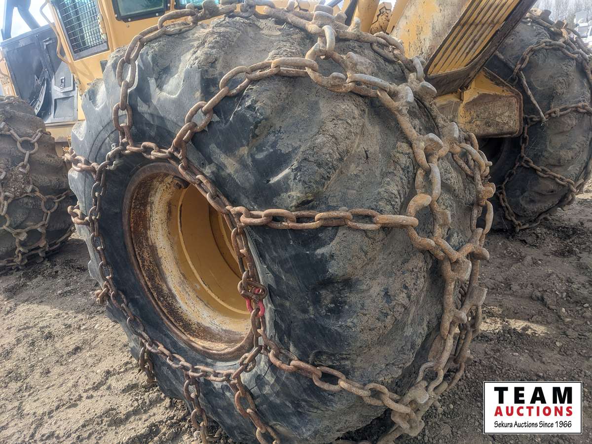 Decking blade, A/C cab, hydraulic dual function grapple, (2) sets tire chains, 73/44.00 x 32, Webasto engine heater