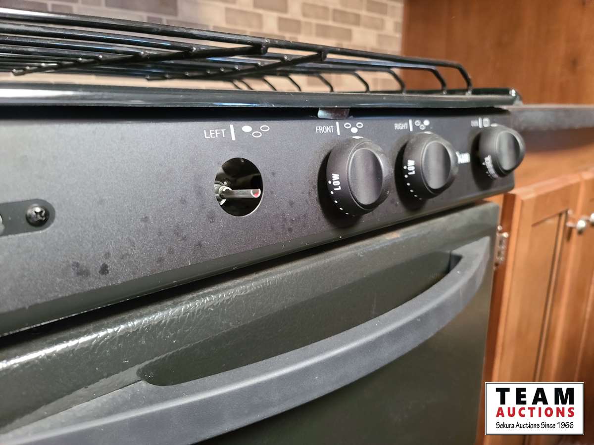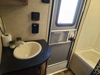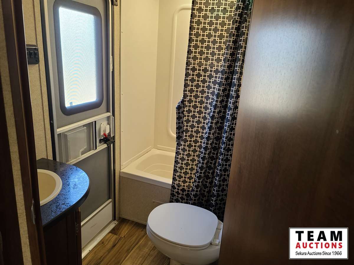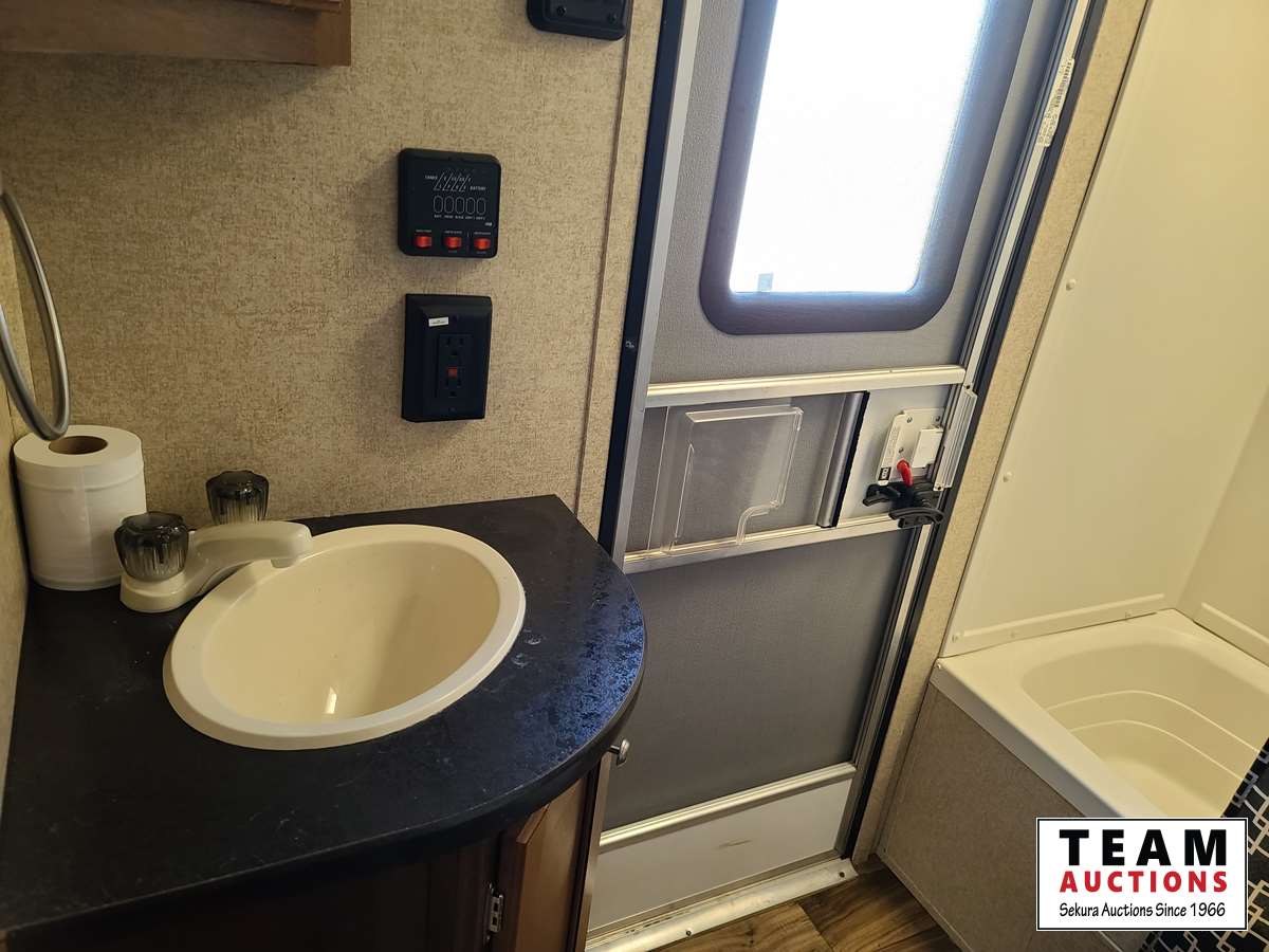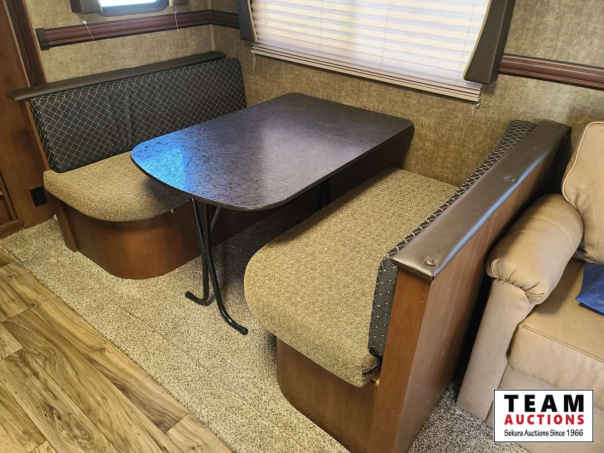 (2) slide outs, fridge, stove, microwave, kitchen island, couch, power awning, power jacks, queen bed, double bed w/single bed bunk, bathroom, 225/75R15 tires