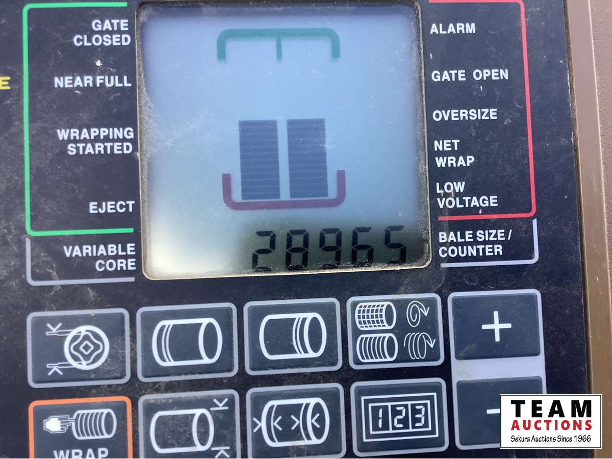 Twine and Mesh wrap, Mega wide pickup with gauge wheels, cab control monitor, shows 28,965 bales, needs a bearing on the end of the pickup shaft as seen in pictures and a safety shield on the PTO shaft. 540 PTO