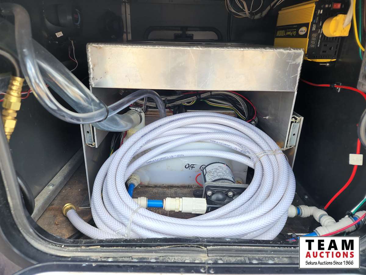 Queen bed, stove, kitchen sink, fridge, outdoor shower, Solar powered charging system w/inverter, 10 gal water, Boss stereo system, independent suspension, front and rear storage, 2365/70R17 tires