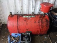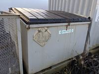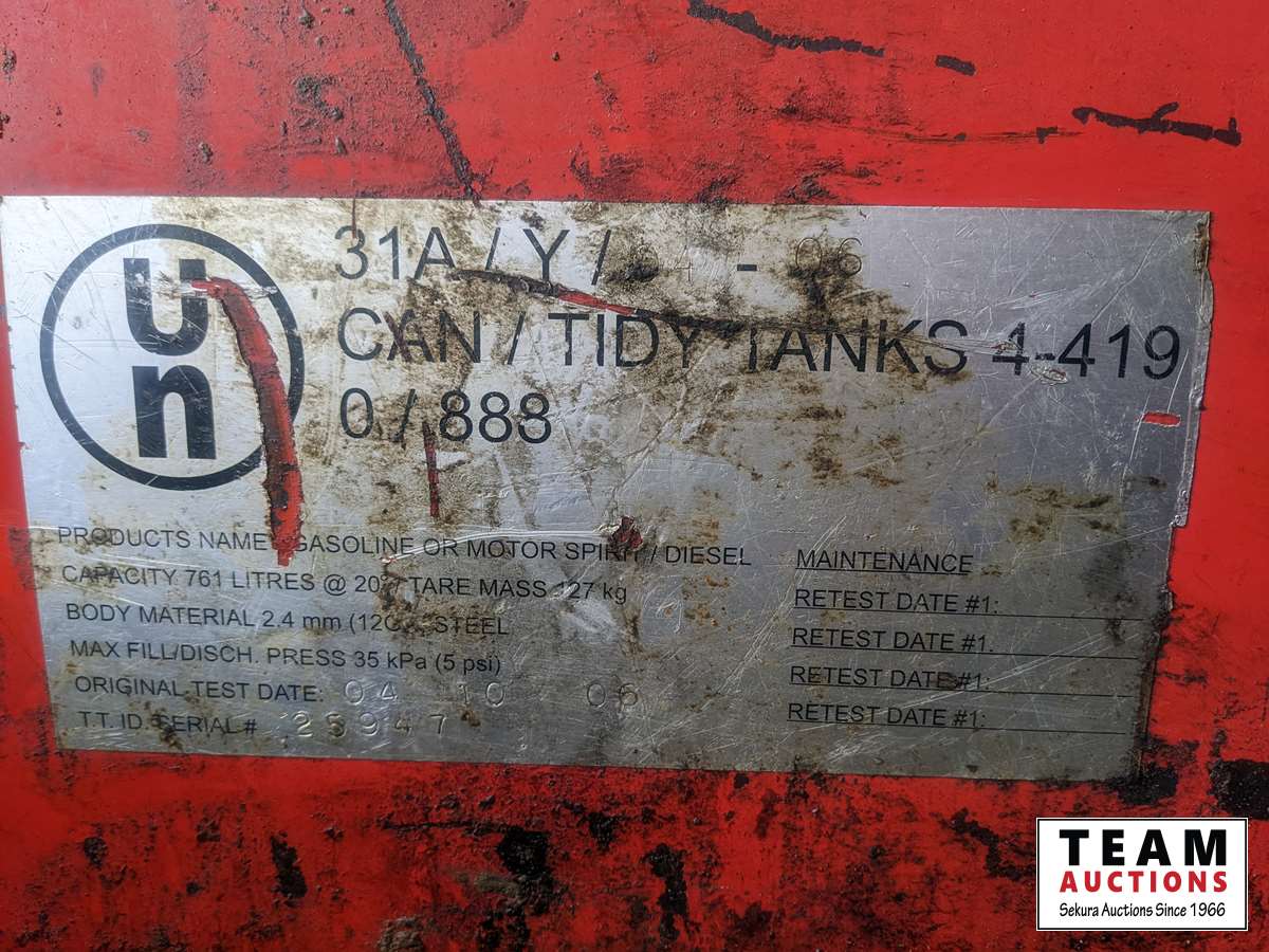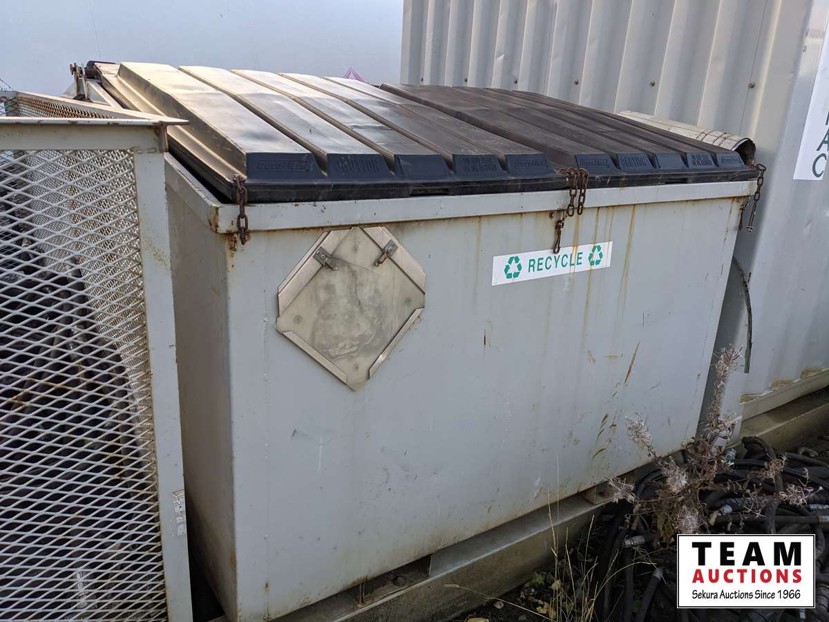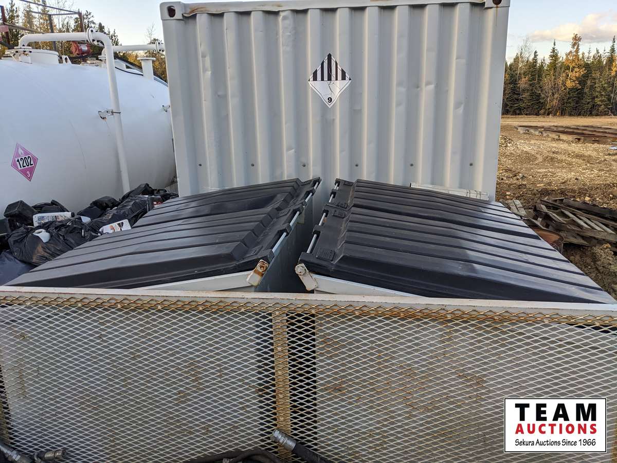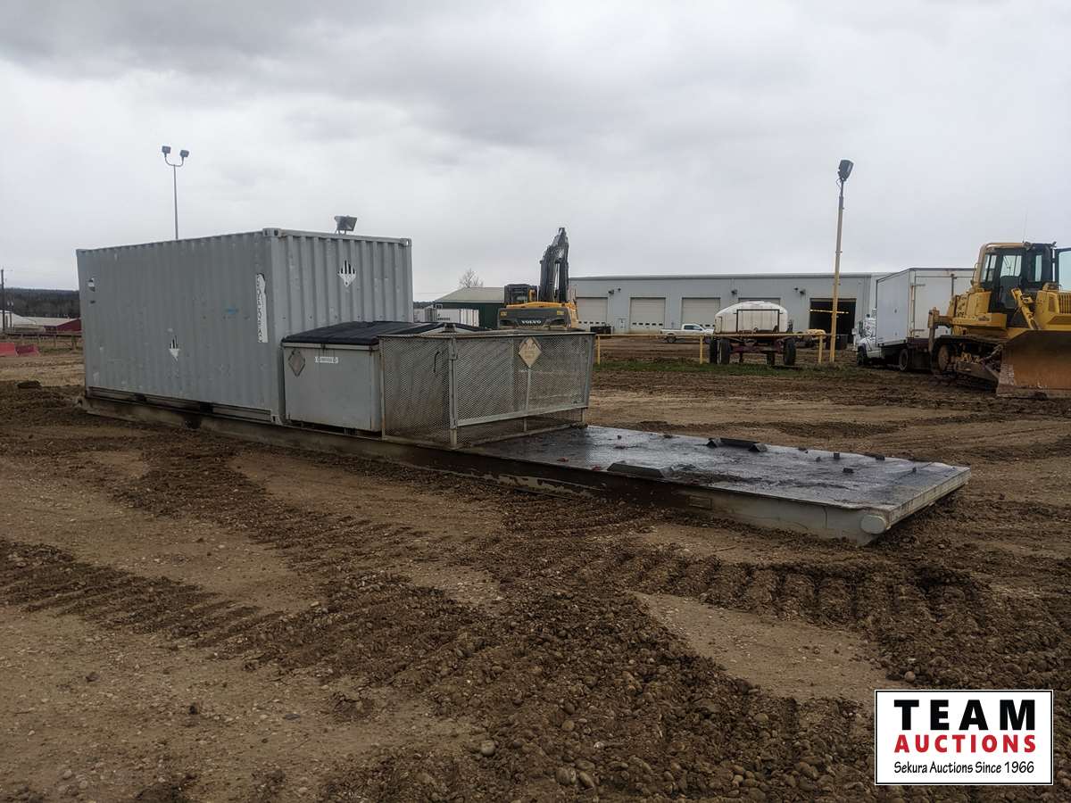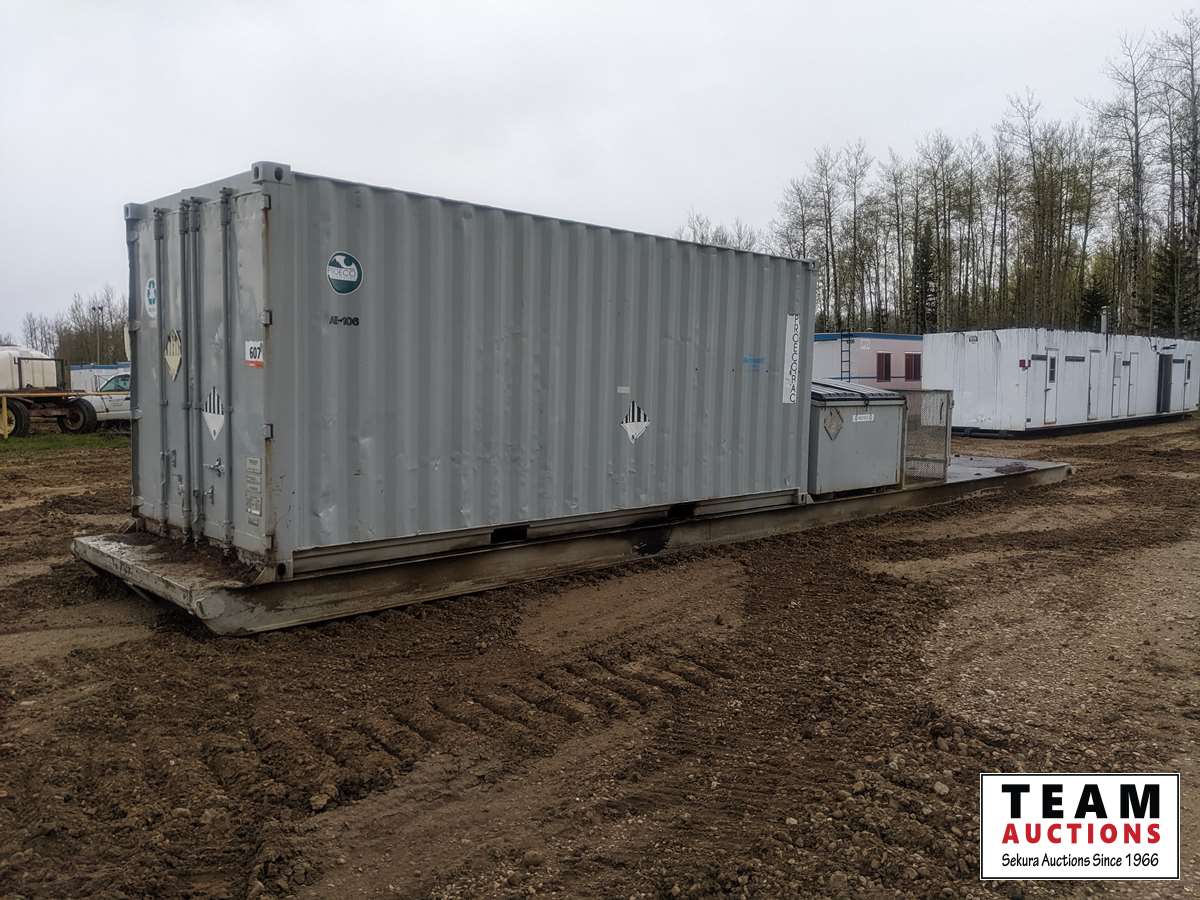 20 ft shipping container, 5153 litre used oil storage tank, 2006 UN 761 litre antifreeze storage tank, (2) Garbage bins