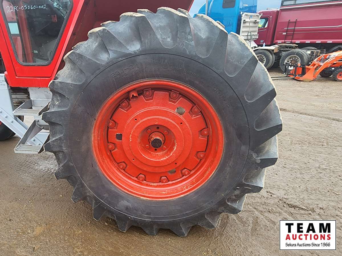 121 HP, 5.8 L, 6 cylinder, deisel, 12 speed two speed power shift transmission, cab, power steering, 2 rear hydraulic outlets, 540 PTO, 11.00-16 front & 23.1-34 rear tires