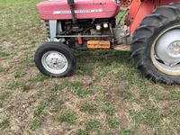 Perkins, 38 HP, 2.5 L, 3 cylinder, diesel, 8 speed transmission, 3 PT Hitch, 540 PTO, rear single hydraulic couplers, 13.6 x 28 rear tires